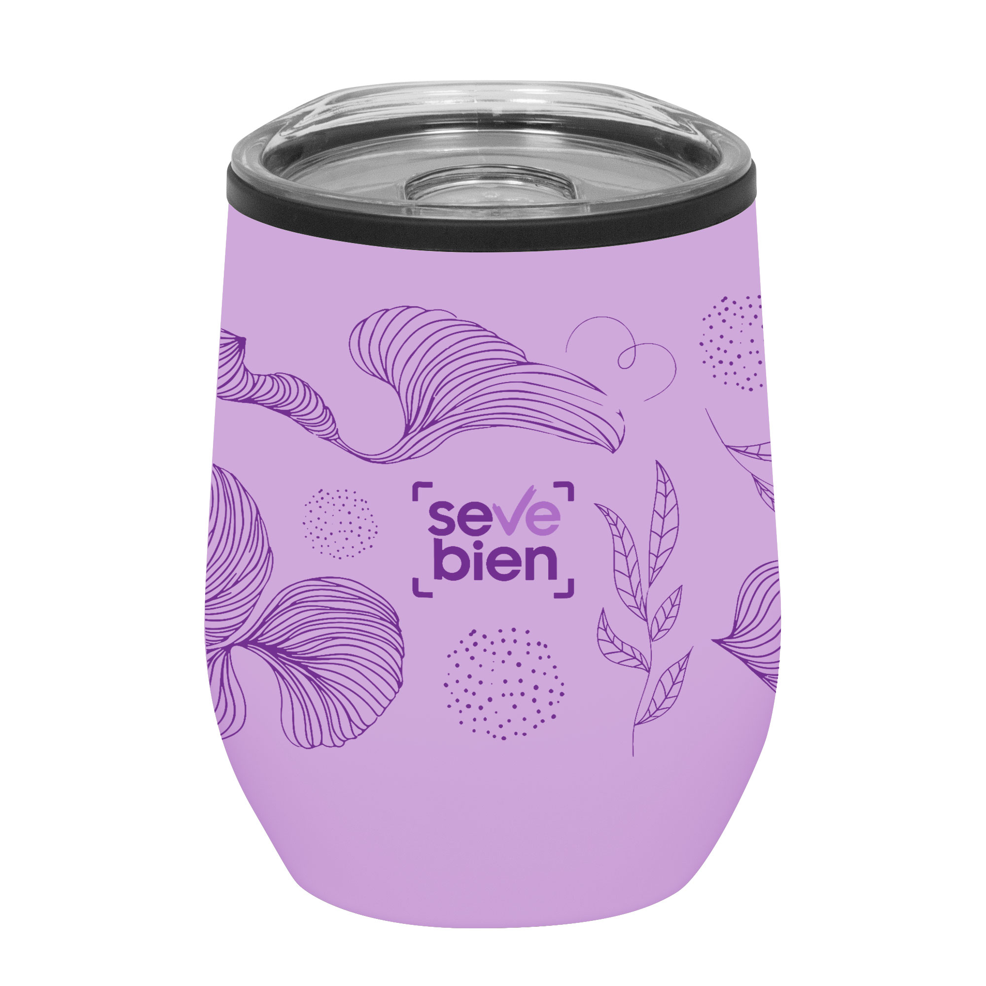 Ø 8 x 11,5 cm. Capacidad 350 ml. Polipropileno y acero inoxidable. Doble Pared. Interior de plástico y exterior acero inoxidable 201. Pintura Powder Coat (pintura mas duradera y resistente a la corrosión y el paso del tiempo). Tapa transparente con seguro antiderrame. Base antideslizante. Presentación en caja de regalo.