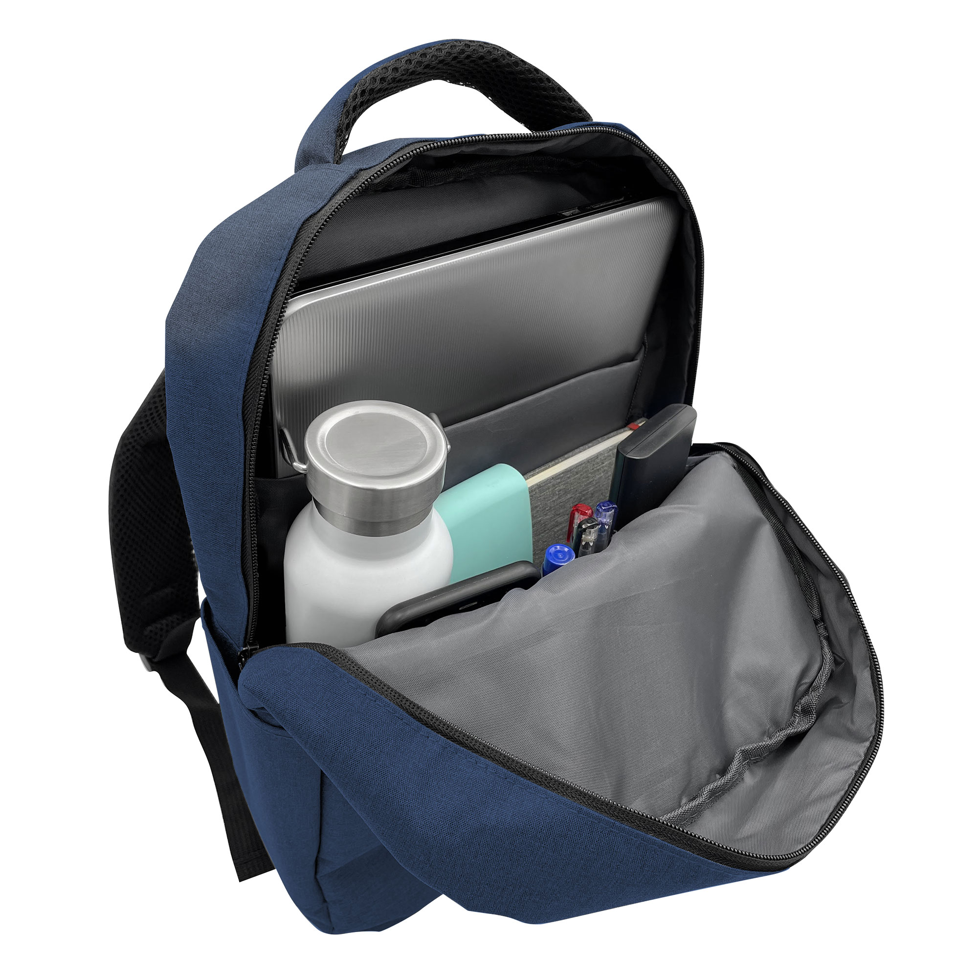 43 x 29 x 11 cm. Capacidad 11 litros. Poliester 300D Wulong. Morral portanotebookde hasta 15 pulgadas. Interior con bolsillo acolchado y múltiples compartimentos para accesorios. Bolsillo principal en el frente con cierre y otro bolsillo lateral para trasladar tu botella y mantenerte hidratado. Correas regulables y espalda acolchadas con red. Tiradores de cierres metálicos.