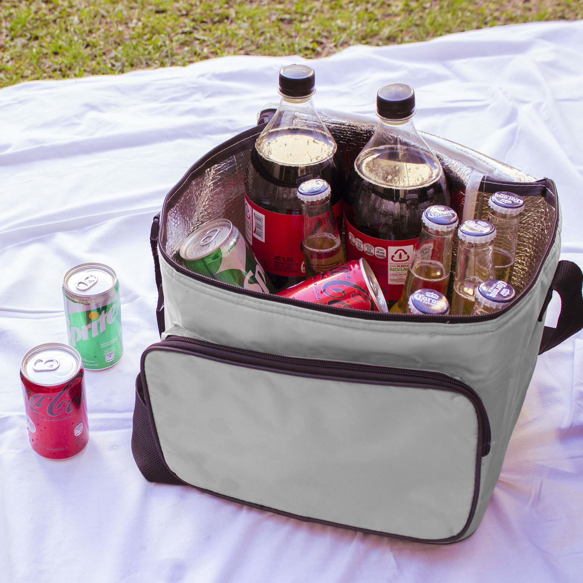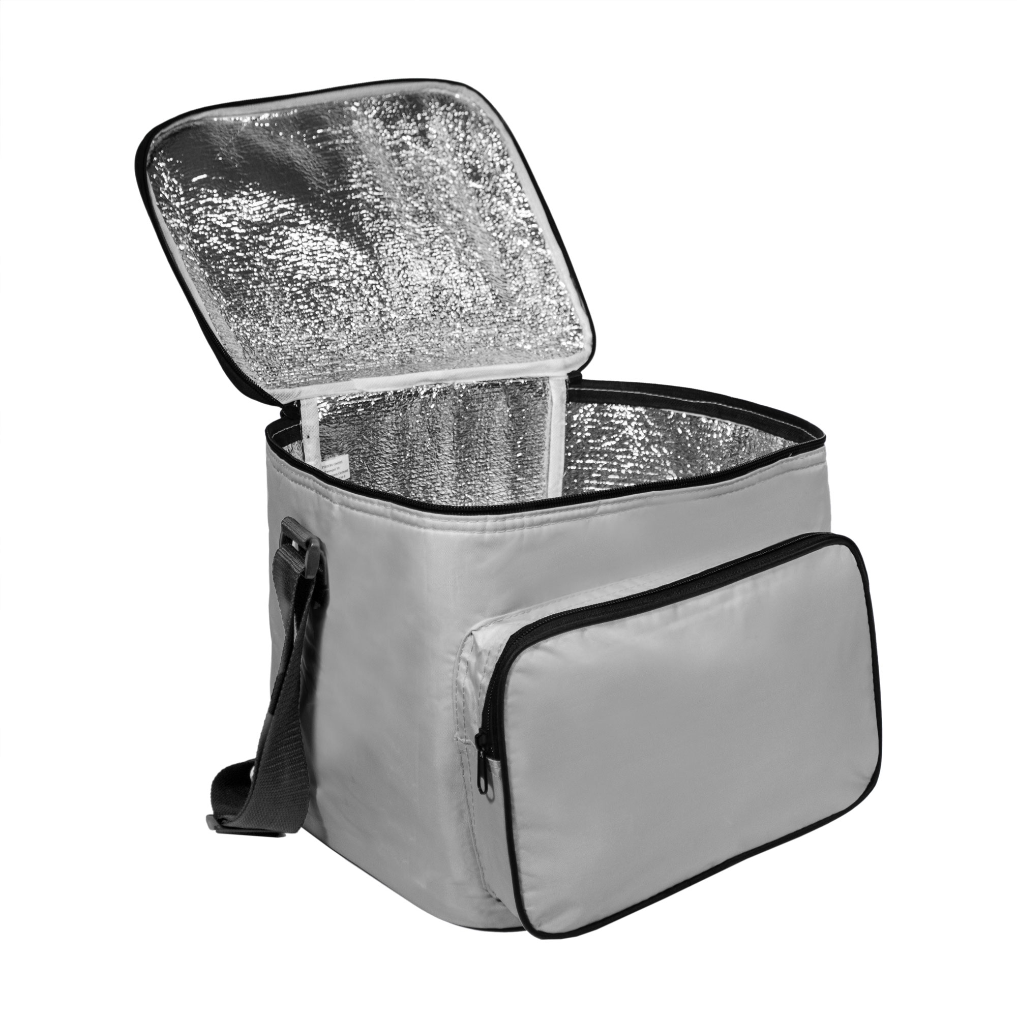 25 x 28 x 25 cm. Capacidad 17,5 litros. Poliéster 420D. Interior recubierto de aluminio. Exterior con bolsillo y cierre que permite guardar pequeños objetos. Tira con regulador de tamaño para poderla transportar cómodamente.