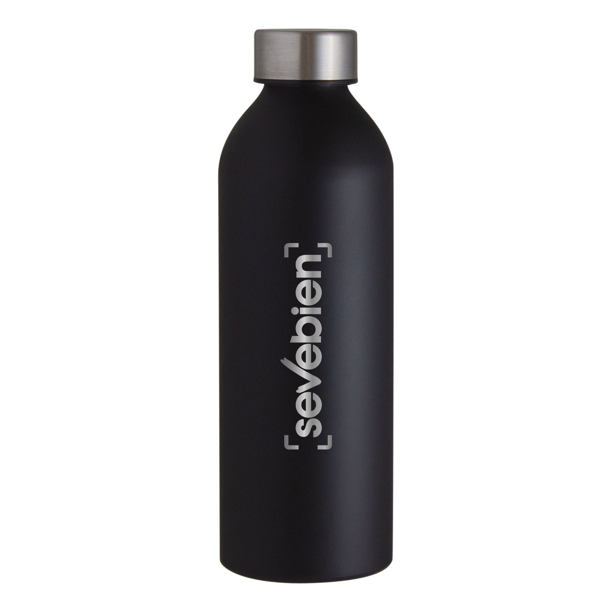 Ø 7,2 x 22,5 cm. Capacidad 750 ml. Aluminio. Botella de aluminio con acabado mate. Tapa a rosca color plata en acero inoxidable 201 y anillo de silicona antiderrame.