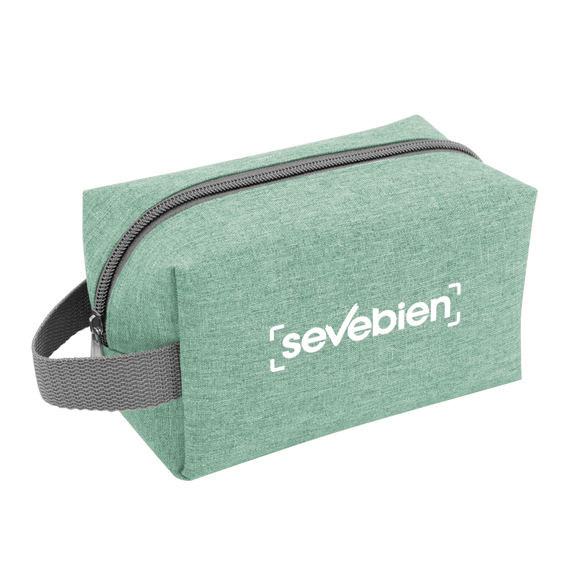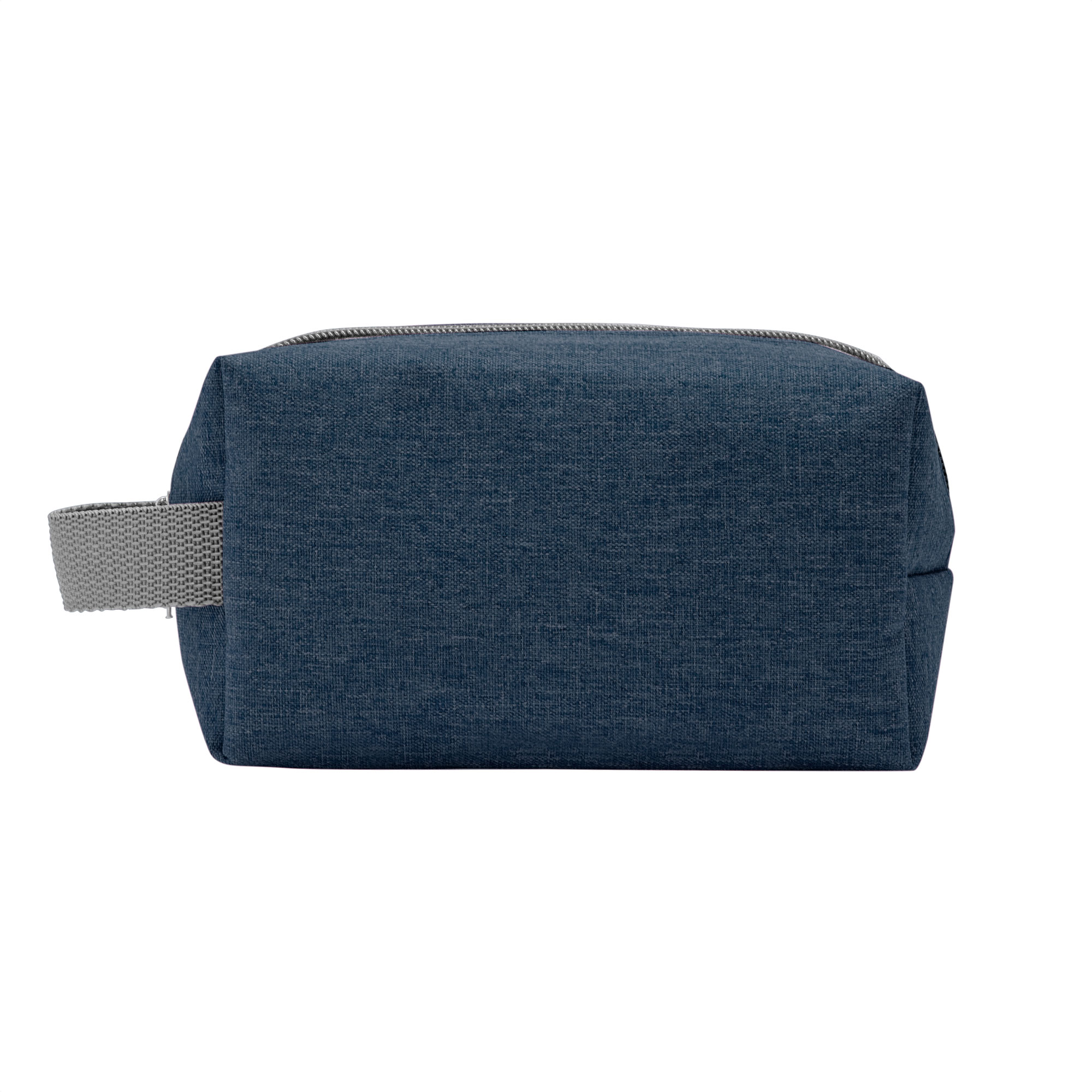 Poliéster 300D. Necessaire con amplio compartimento. Interior forrado en Poliéster 210D. Cierre con tirador metálico y asa lateral en tela de color gris.
