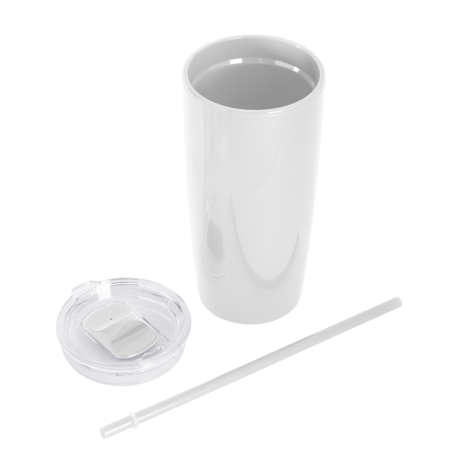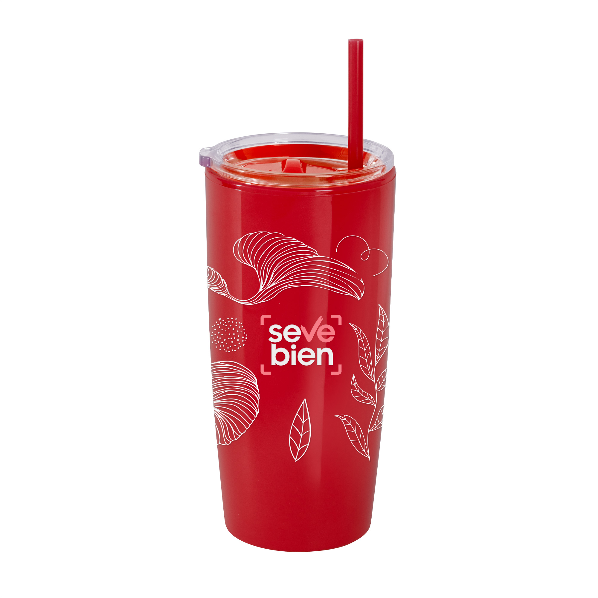 Disfruta de tus bebidas favoritas con comodidad.Mug doble pared con sorbete. Tapa plástica transparente a presión con anillo de silicona. Sorbete de polipropileno y cierre deslizante del mismo color que el cuerpo. Cuerpo con acabado brillante. Medidas: Ø 9 cm x 18,6 cm. Capacidad: 600 ml. Materiales: Plástico poliéstireno y polipropileno. Presentación: en caja de regalo kraft.