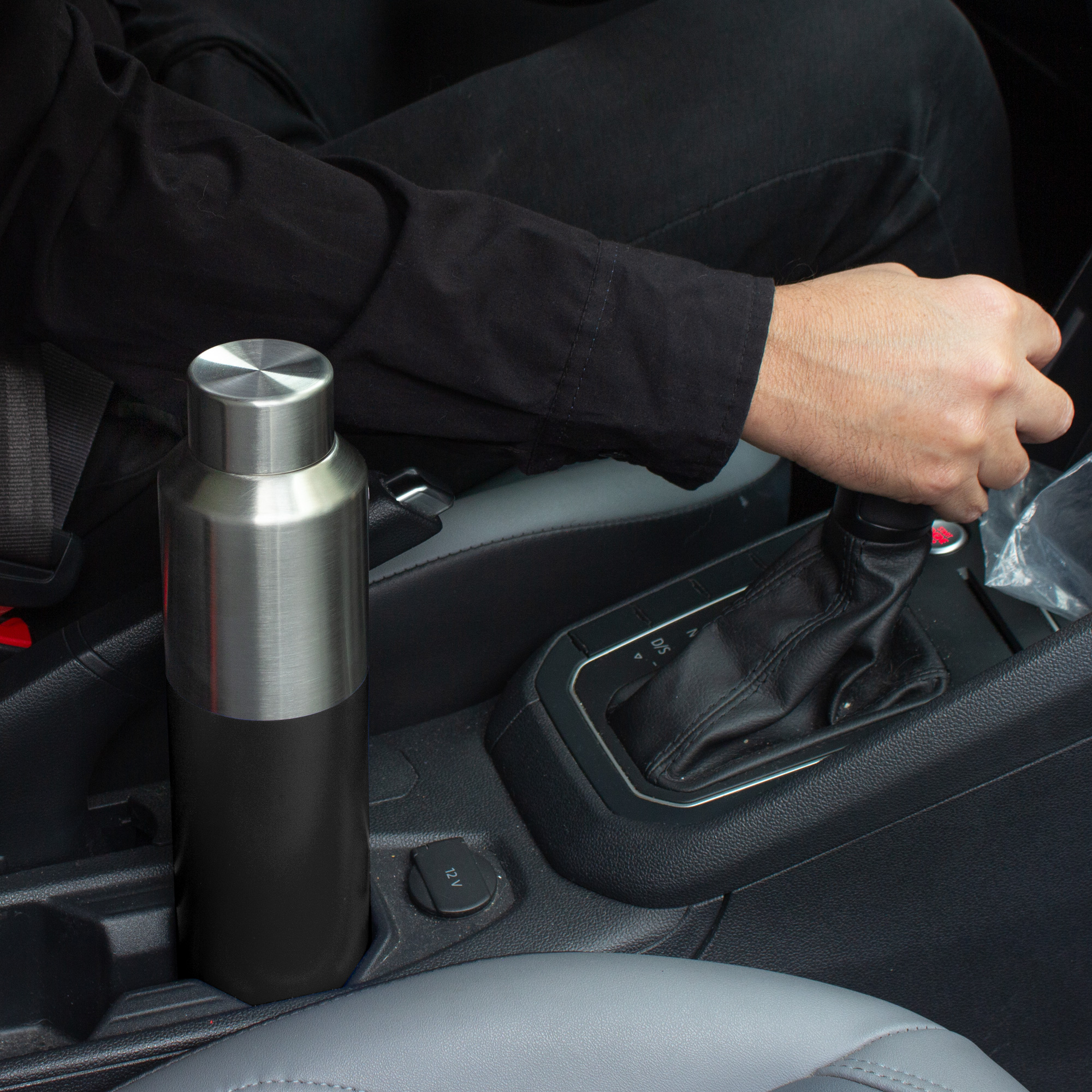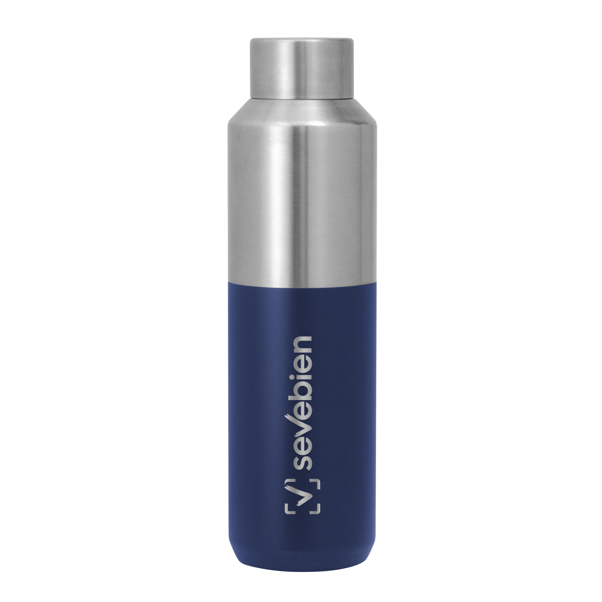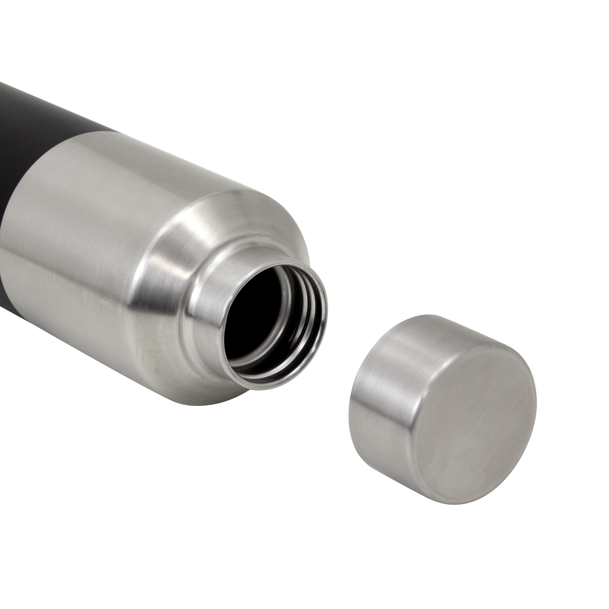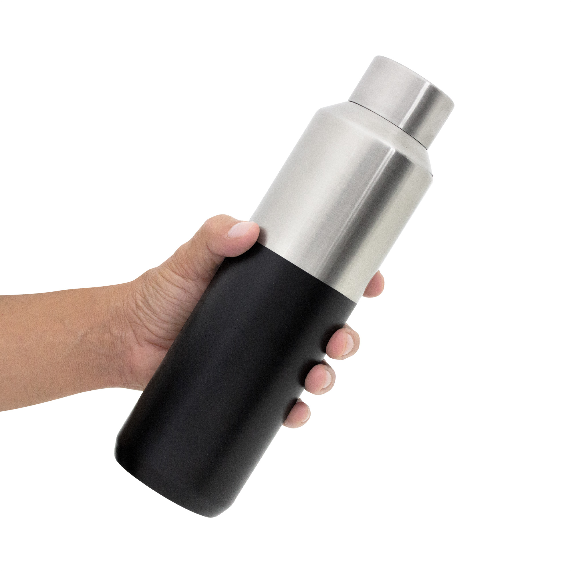 Aislamiento Superior para Bebidas Calientes y Frías.Botella doble pared, sellada al vacío. Tecnología vacuum. Interior de acero 304 y exterior de acero 201. Tapa a rosca de acero 201 con anillo de silicona. Pintura acabado mate en parte inferior. Mantiene por más de 12 hs la temperatura de las bebidas calientes y 24 hs de las bebidas frías. Medidas: Ø 7 cm x 24,5 cm. Capacidad: 600 ml. Materiales: Acero inoxidable. Presentación: en caja de regalo kraft.