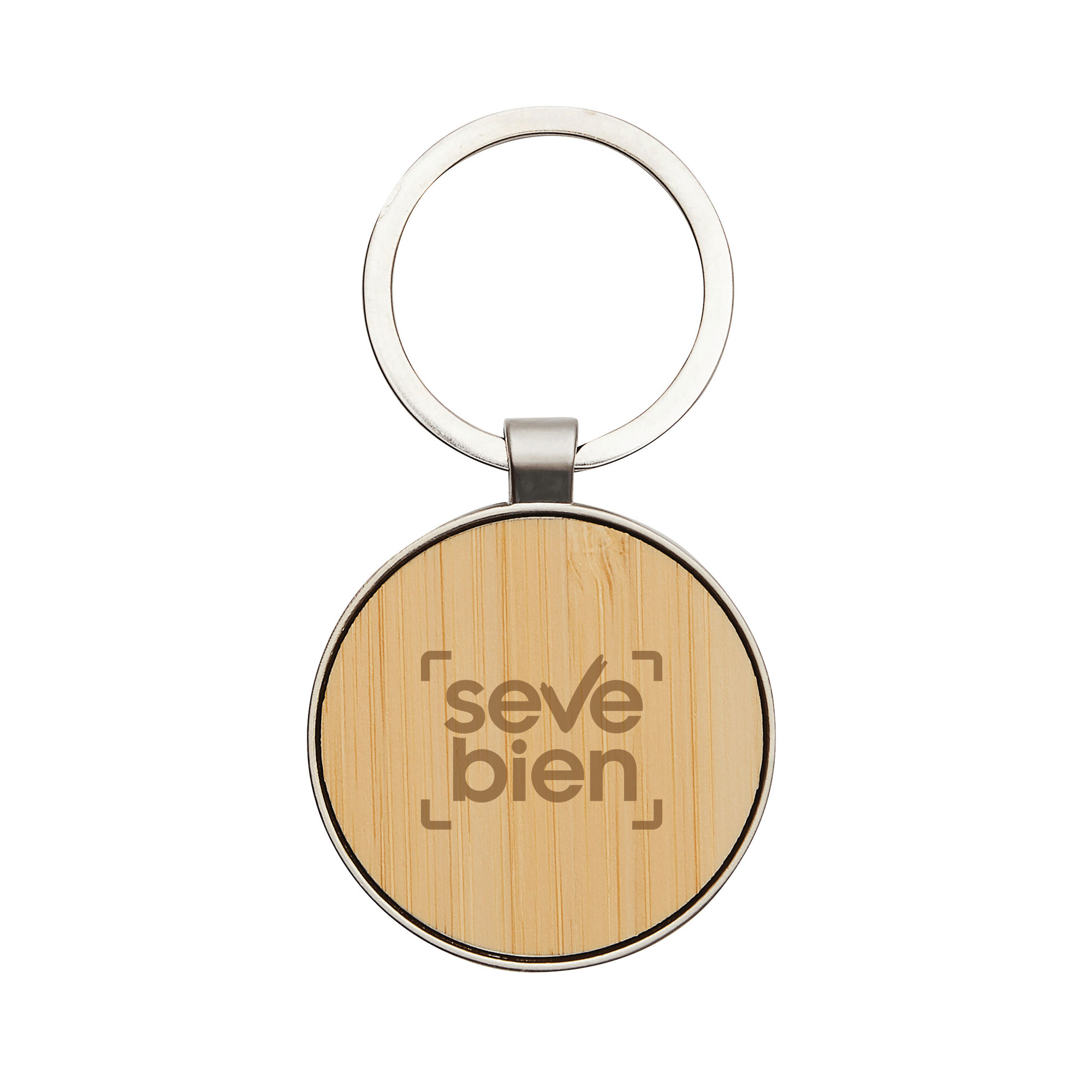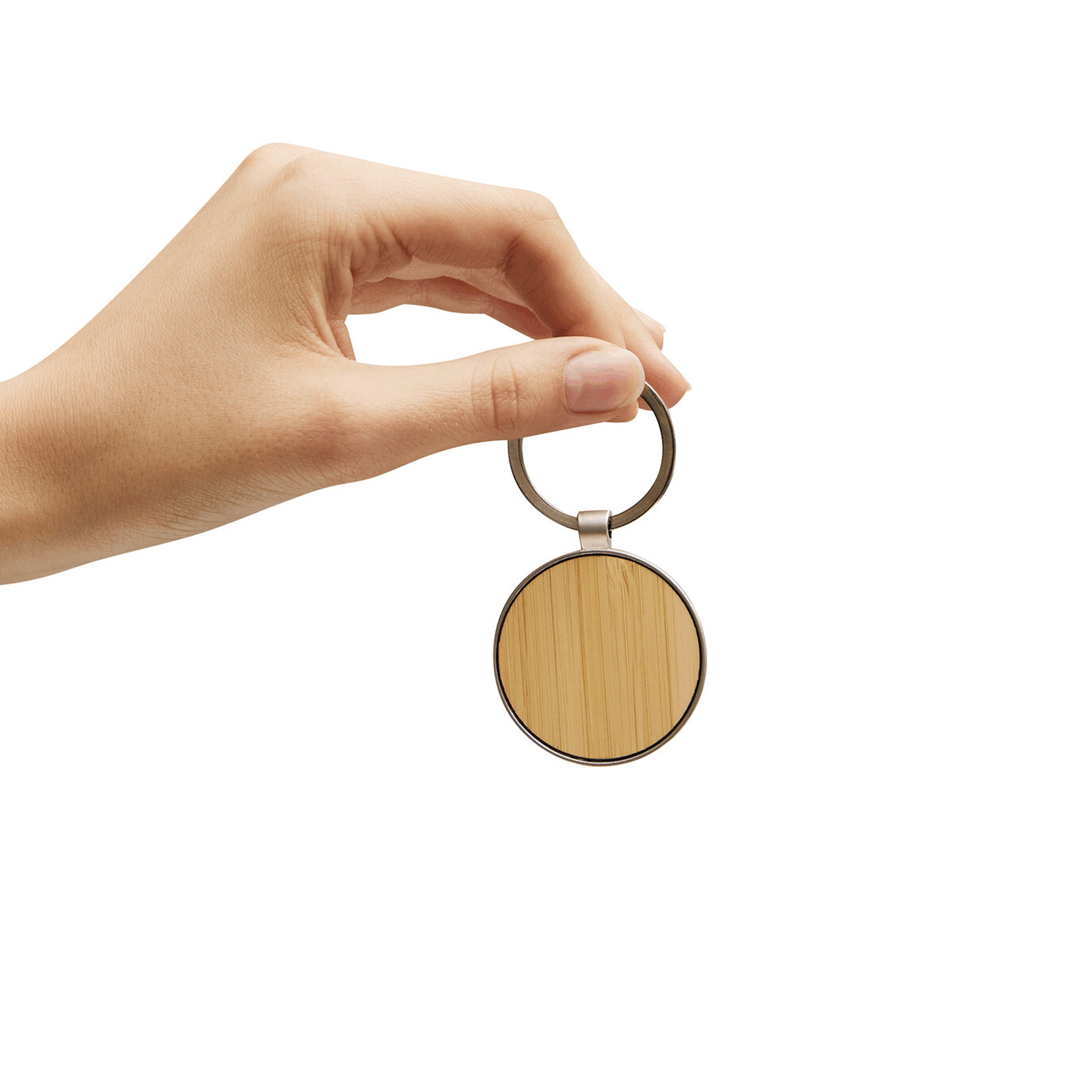 Lleva un toque rústico y clásico en tu bolsillo. Llavero con forma circular. Estructura metálica con aleación de zinc con acabado brillante y panel frontal de bambú barnizado. Medidas: 7,5 x 4 x 0,7 cm. Materiales: Hierro y Bambú. Presentación: en caja de regalo kraft con bandeja de terciopelo color negro.