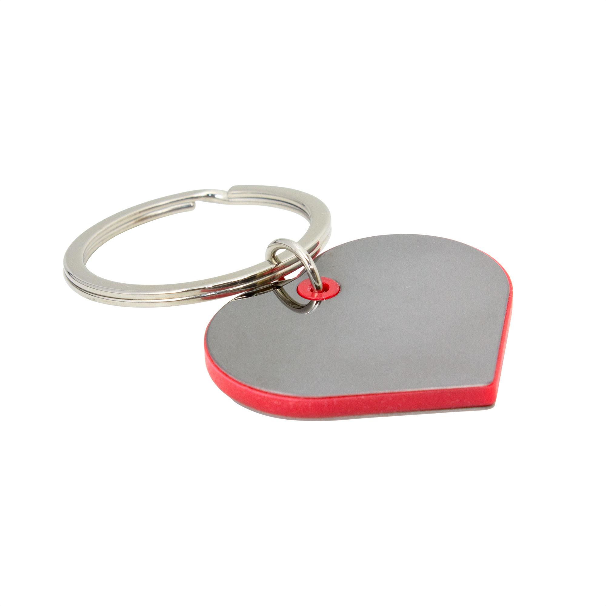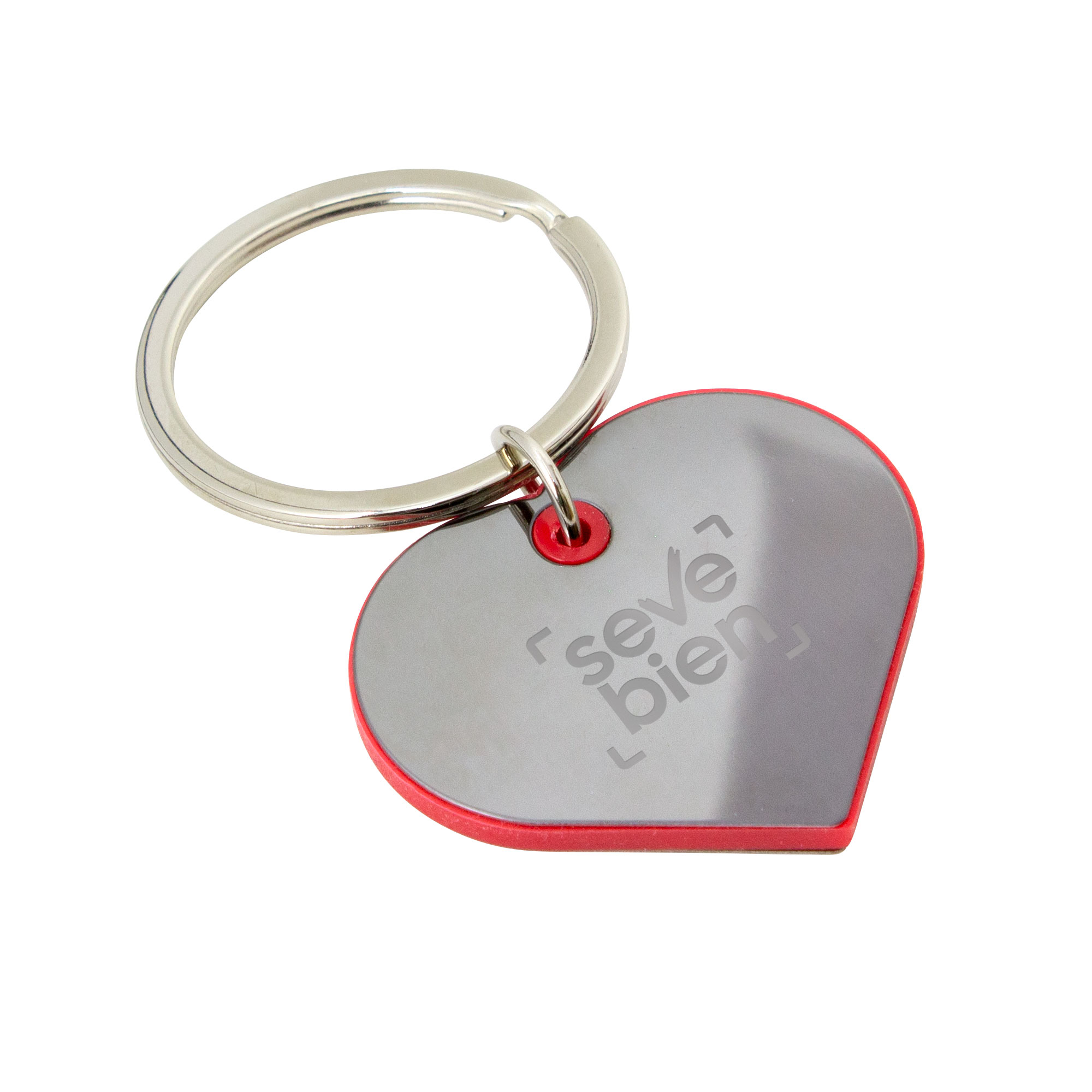 Pequeño, elegante y significativo.Llavero con forma de corazón. Estructura plástica de color con apliques de acero color gris gun de cada lado. Acabado brillante.Medidas: 4,3 x 3,5 x 0,35 cm. LLavero de Ø 3,5 cm x 0,2 cm. Materiales: Hierro, ABS y Acero.