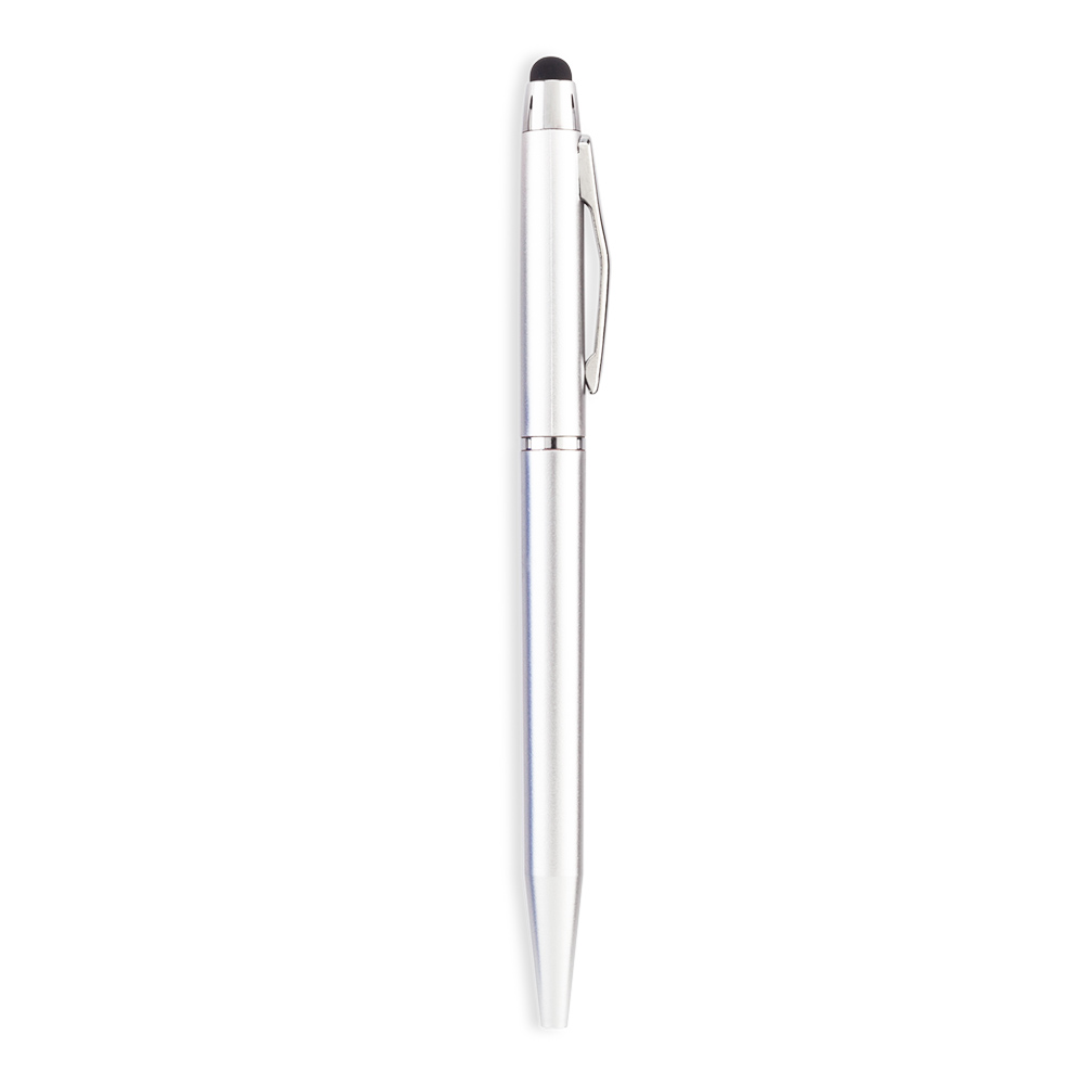 Bolígrafo plástico con stylus. Clip metálico.