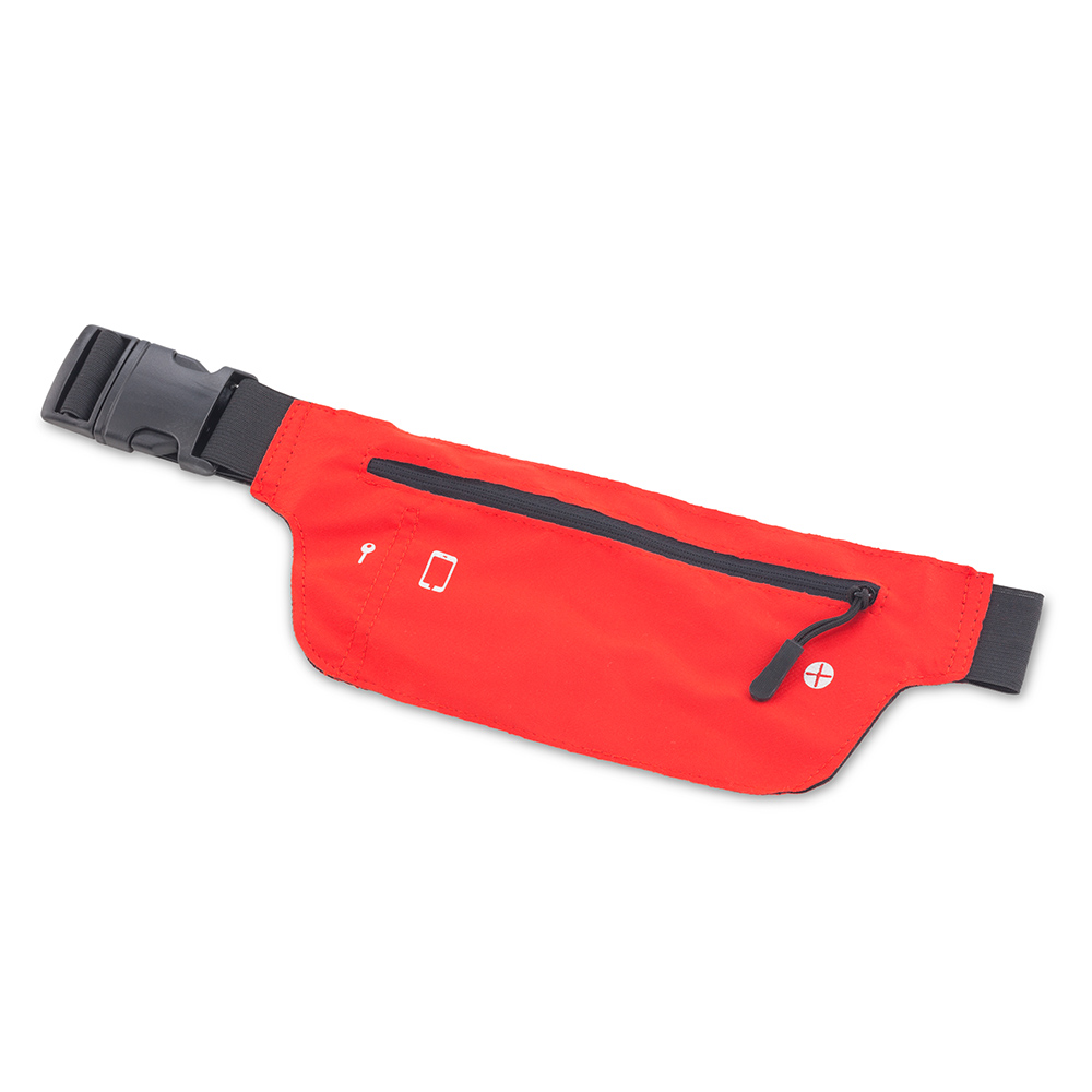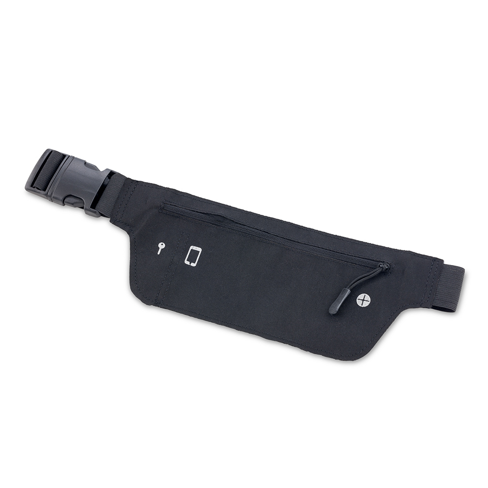 Canguro en poliéster, con portallaves interno y salida para audífonos. Ideal para hacer deporte.