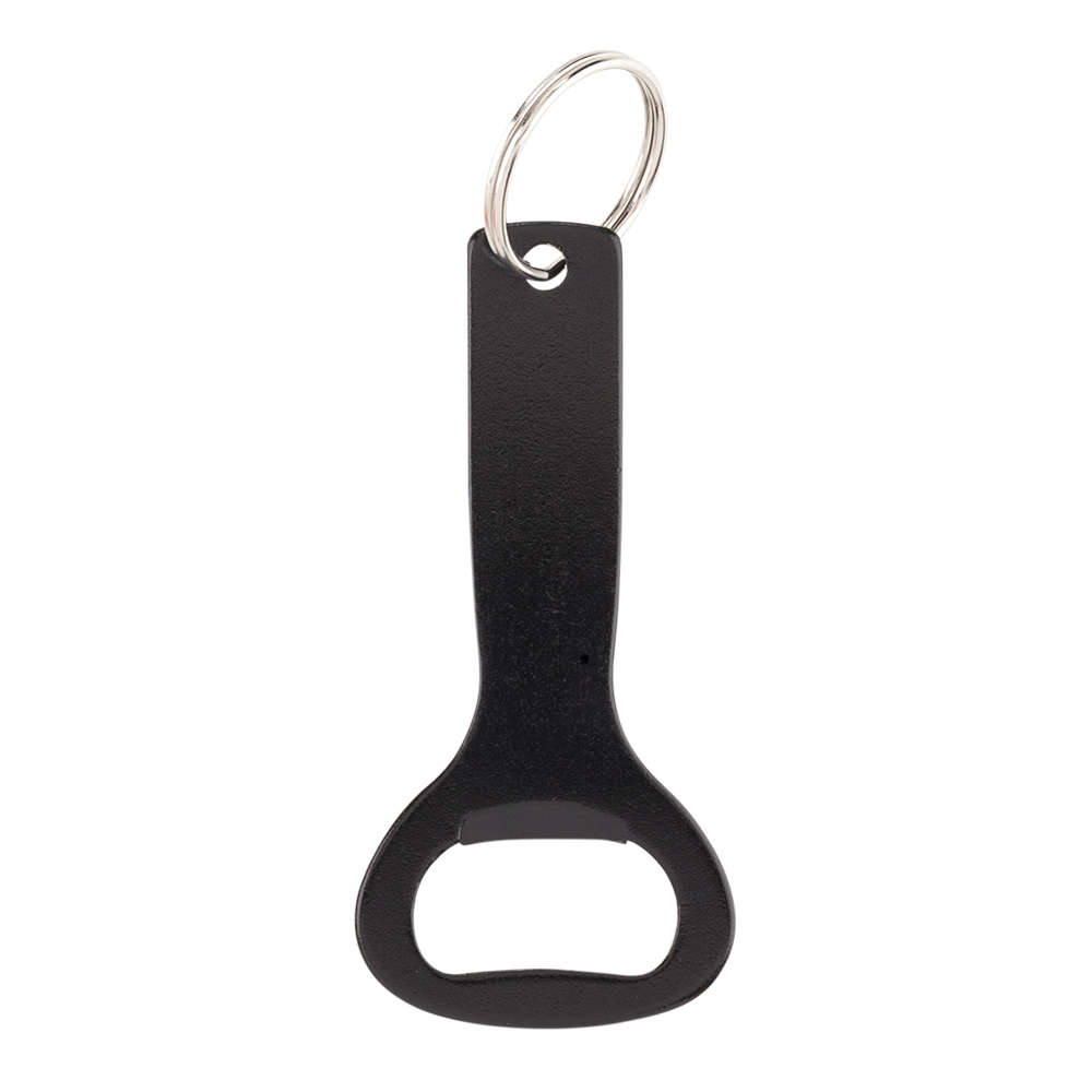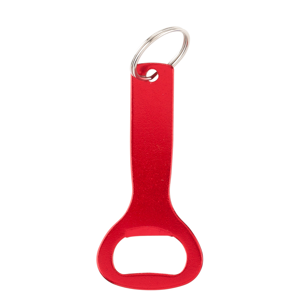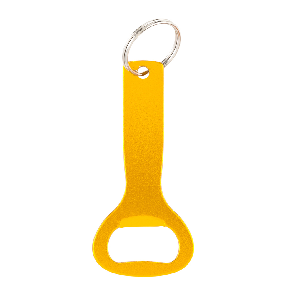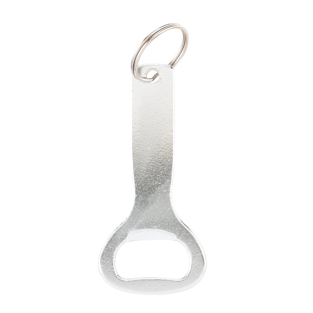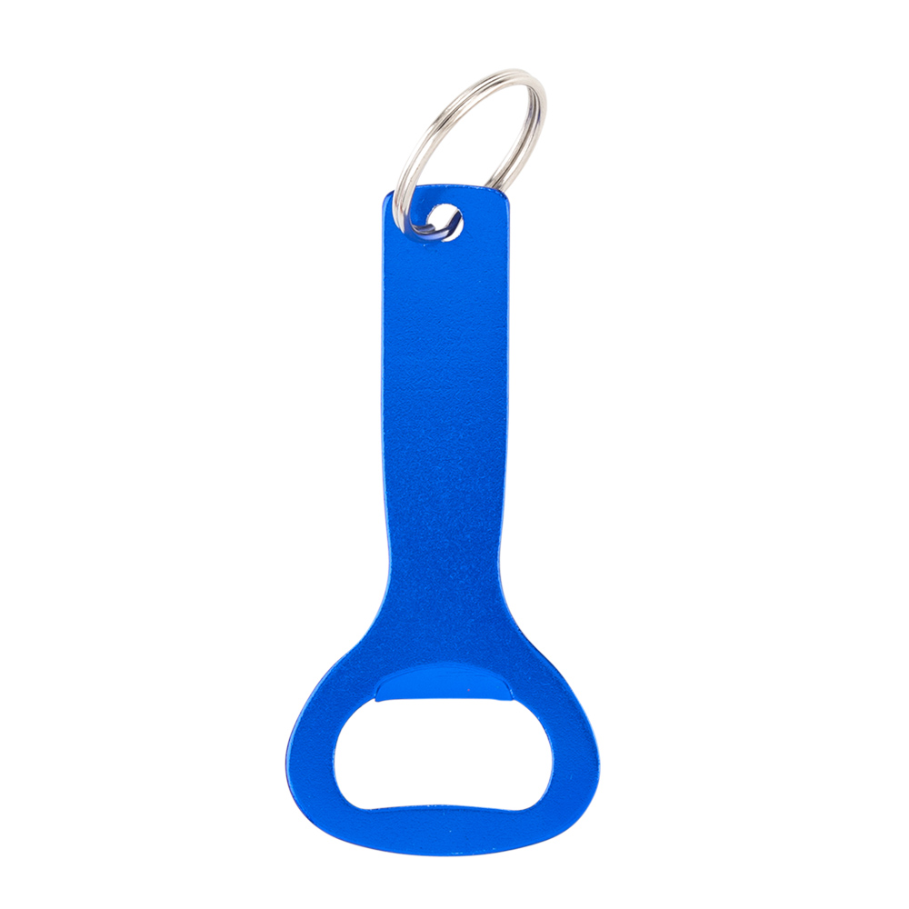 Llavero metálico con destapador.