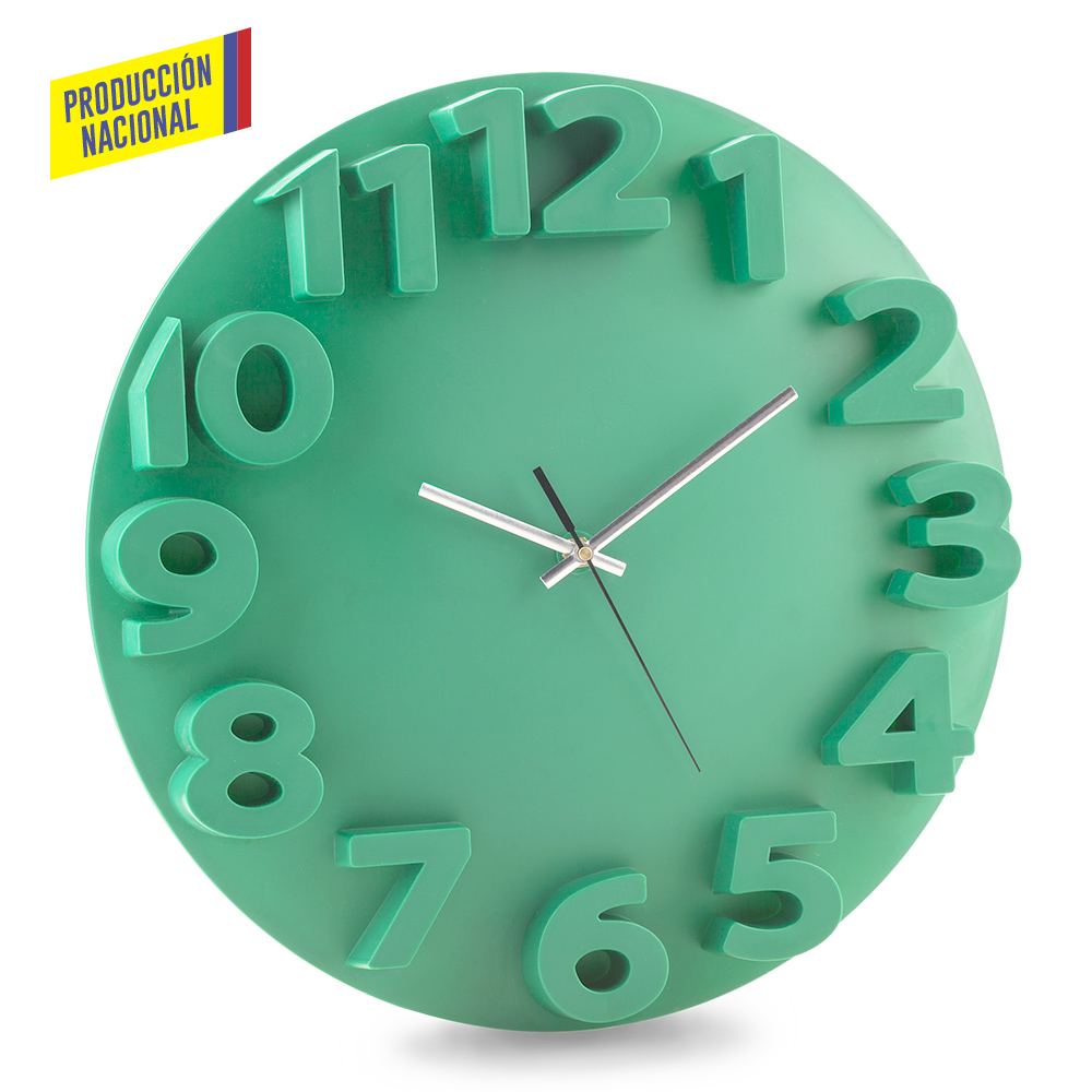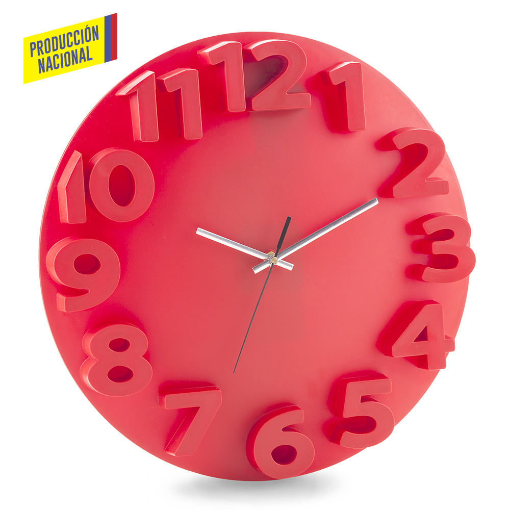 Reloj en poliestireno alto impacto, números en relieve. 1 pila AA no incluida.