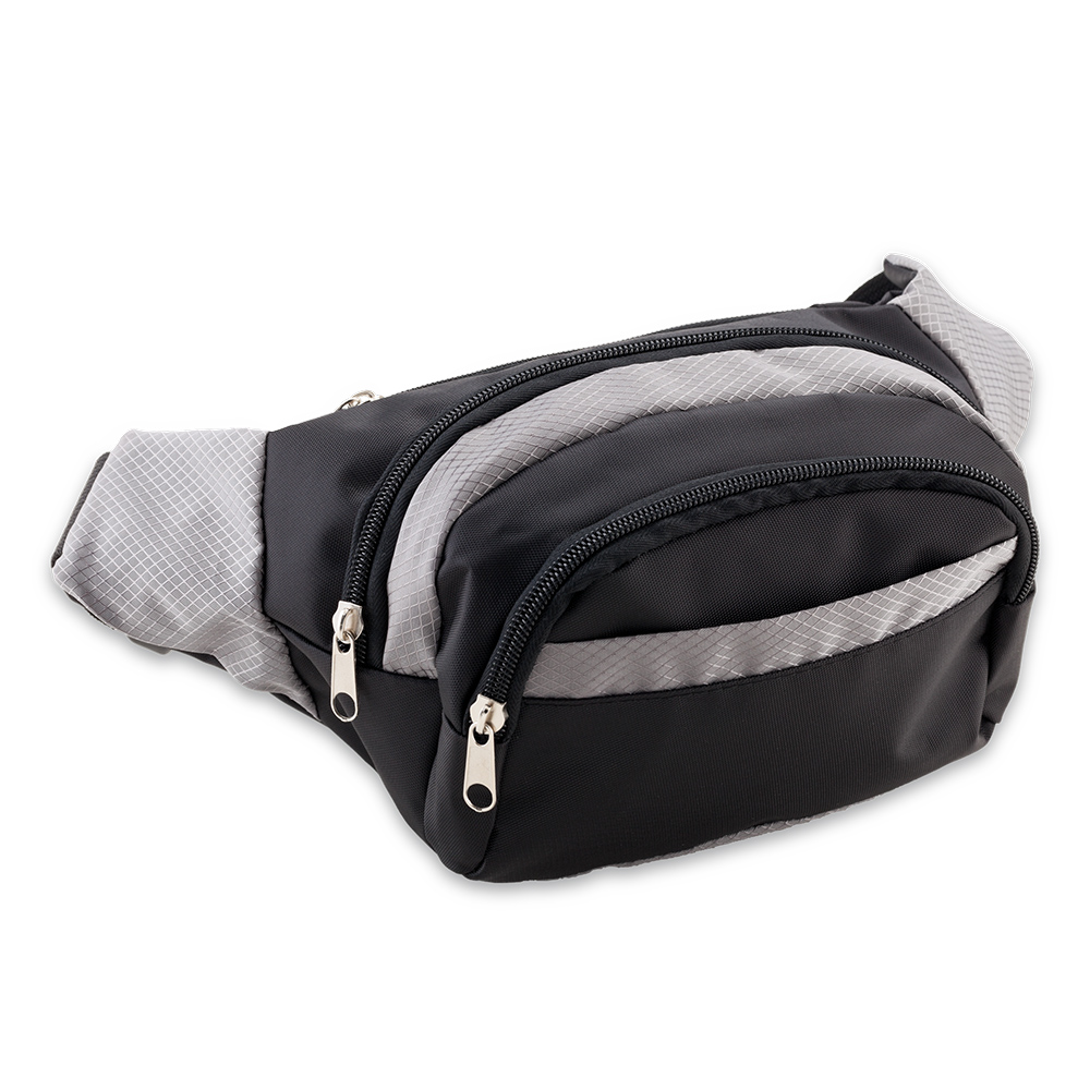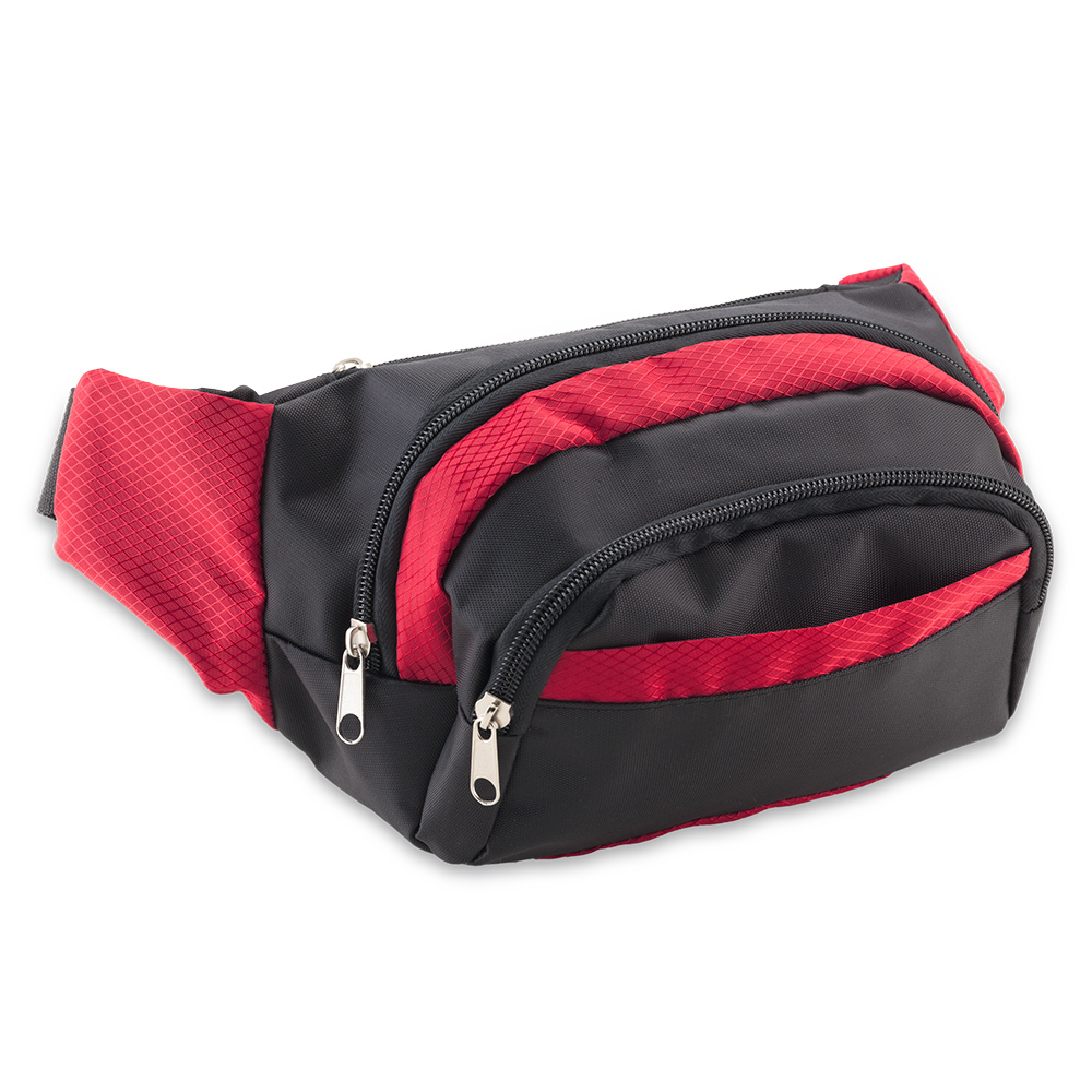 Canguro en lona poliéster con tres bolsillos.
