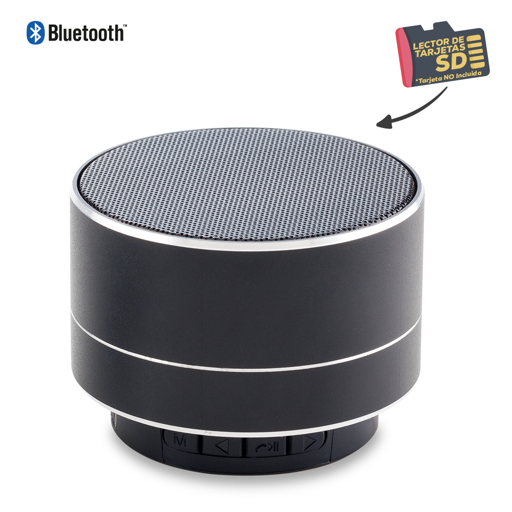Speaker bluetooth metálico. 3W. Con luz, lector de tarjeta SD y puerto USB (no incluidas), funciona como manos libres. Empaque Caja Individual.