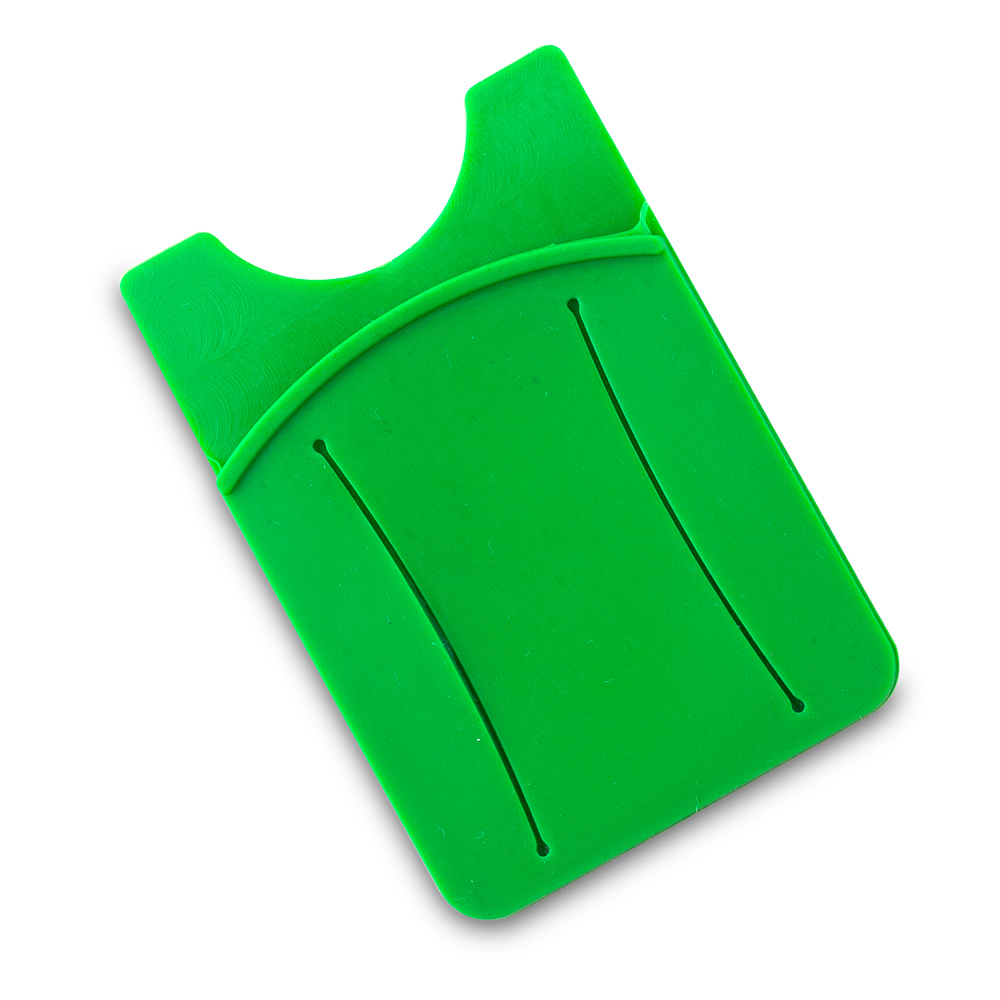 Portatarjetas adhesivo para móviles con organizador de cables.