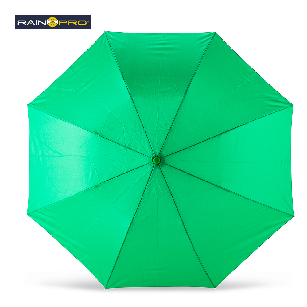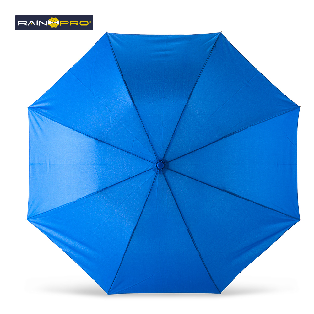 Poliéster pongee 190T. Mango plástico y herraje metálico. 8 cascos. Apertura semiautomático.