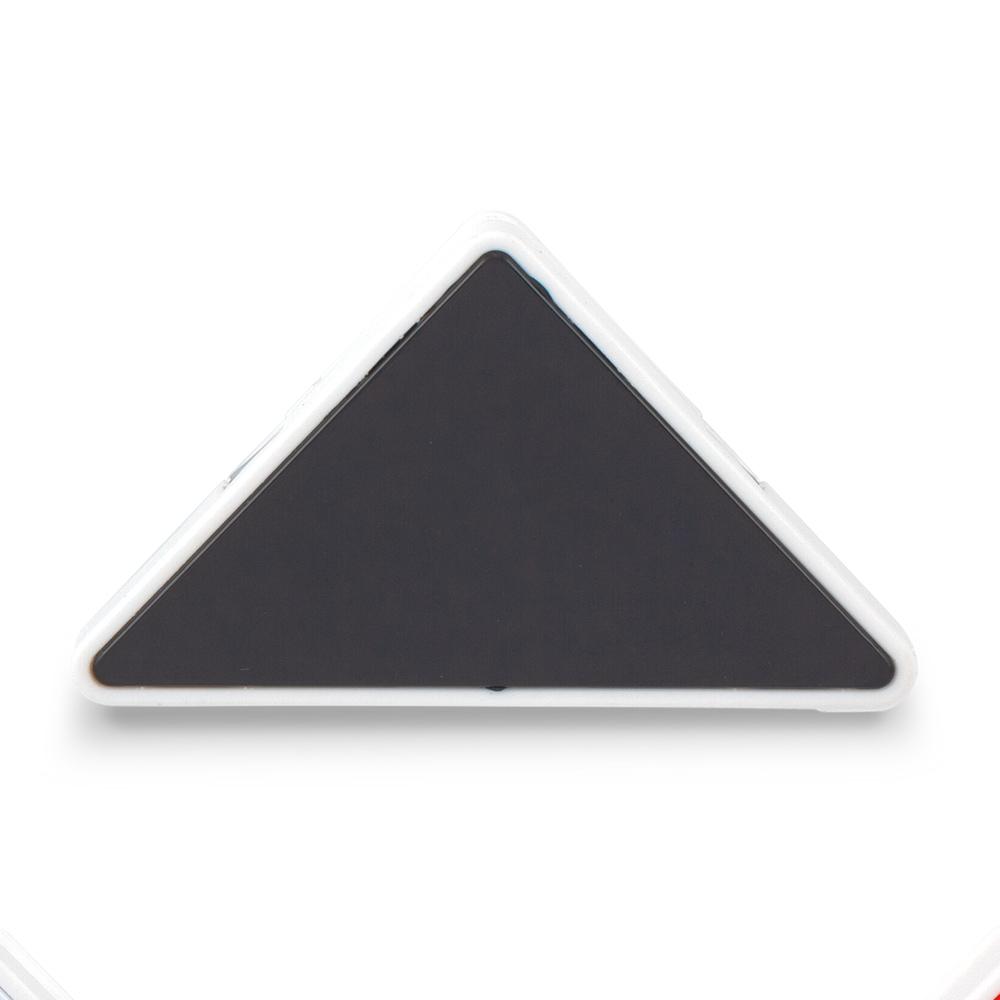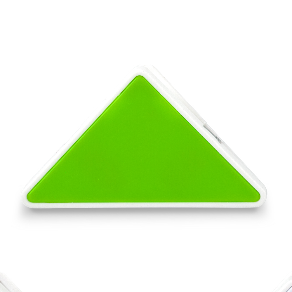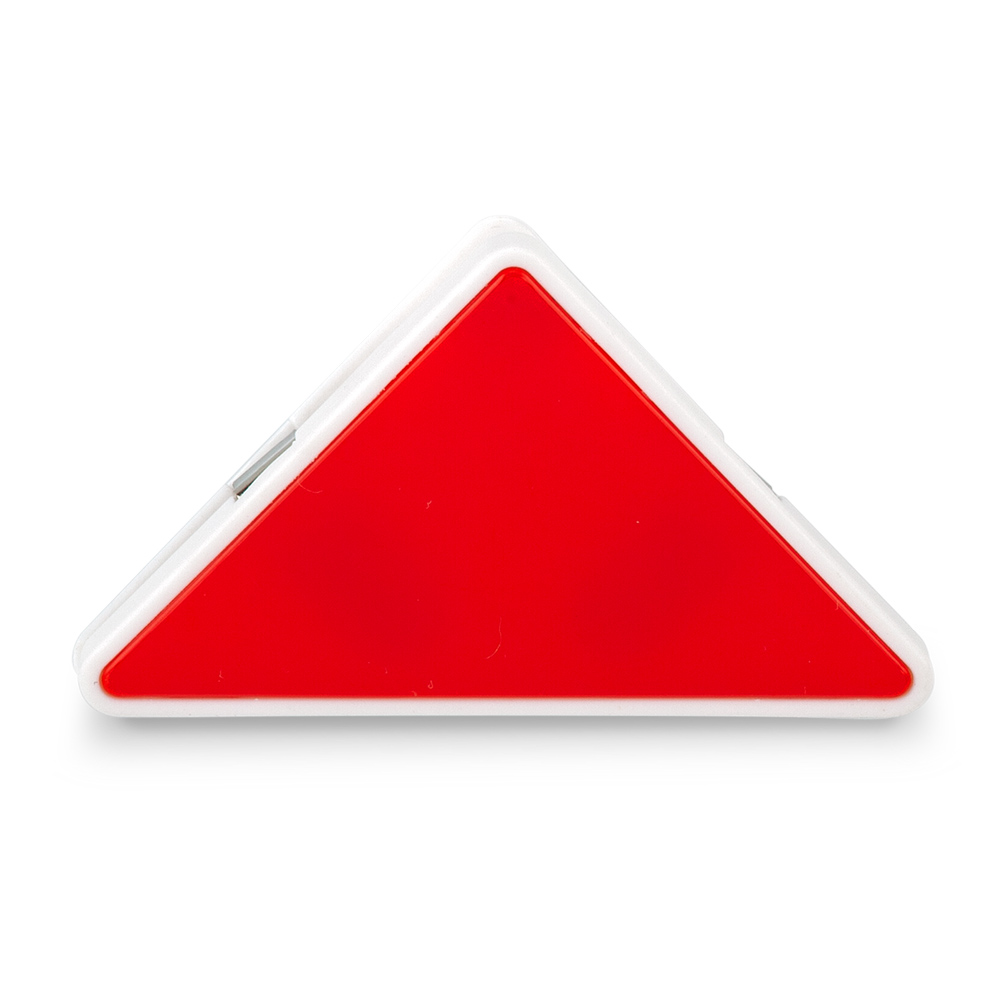 Clip plástico en forma triangular.