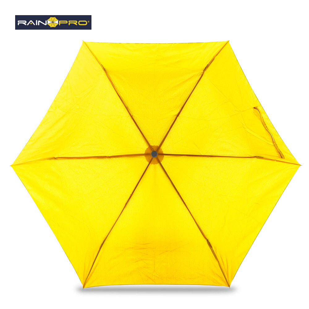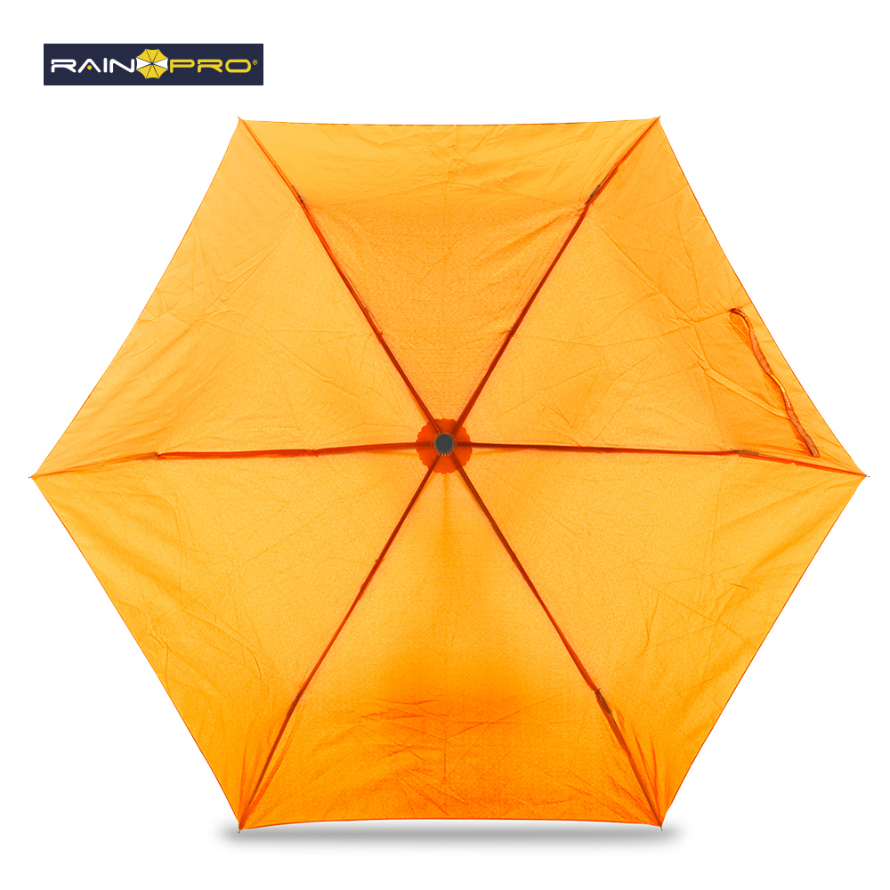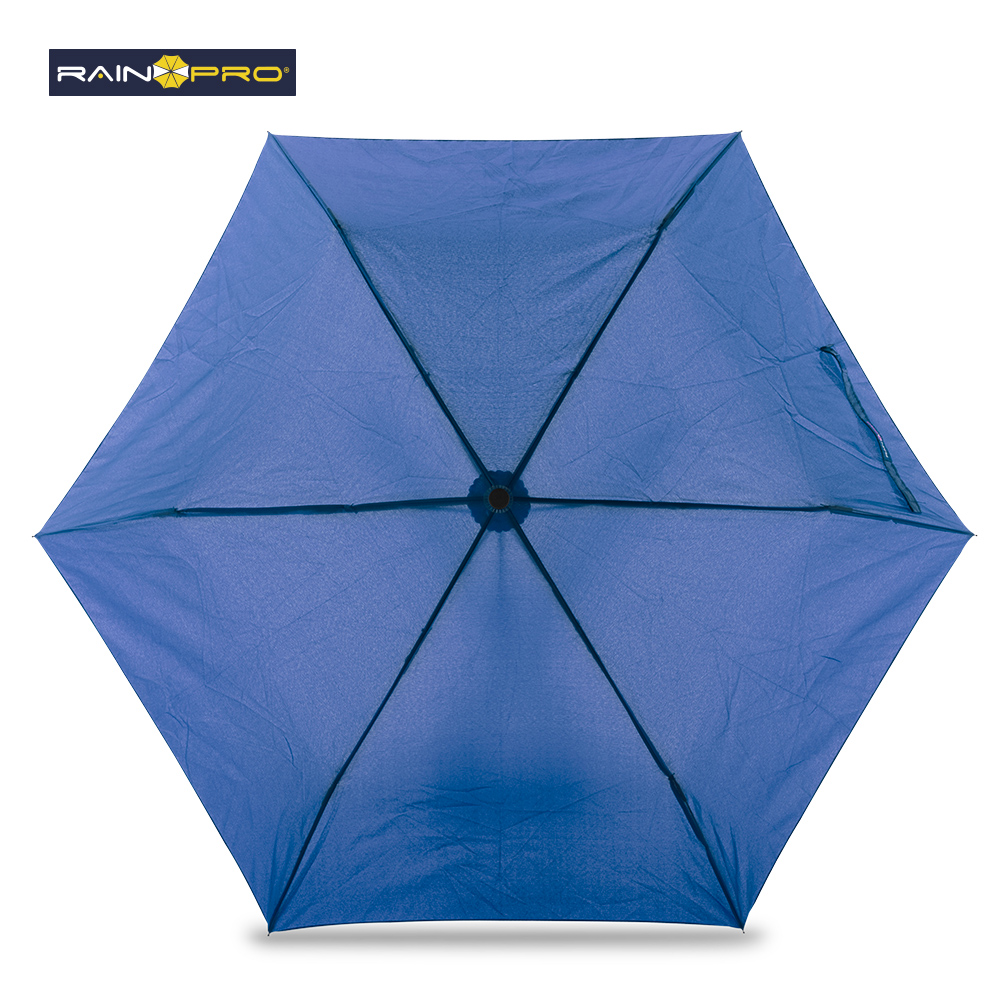 Poliéster pongee 190T. Mango ergonómico en plástico acabado caucho y punta con gancho decorativo para girar y colgar. Apertura y cierre manual. 6 Cascos. Con forro para cargar.