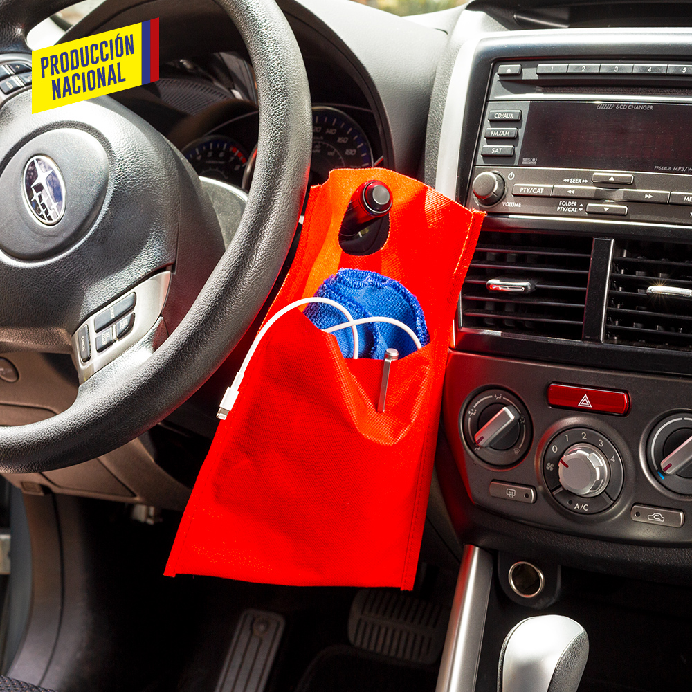 Bolsa cosida en cambrel multiusos con orificio para colgar. Funciona como papelera para automóvil.