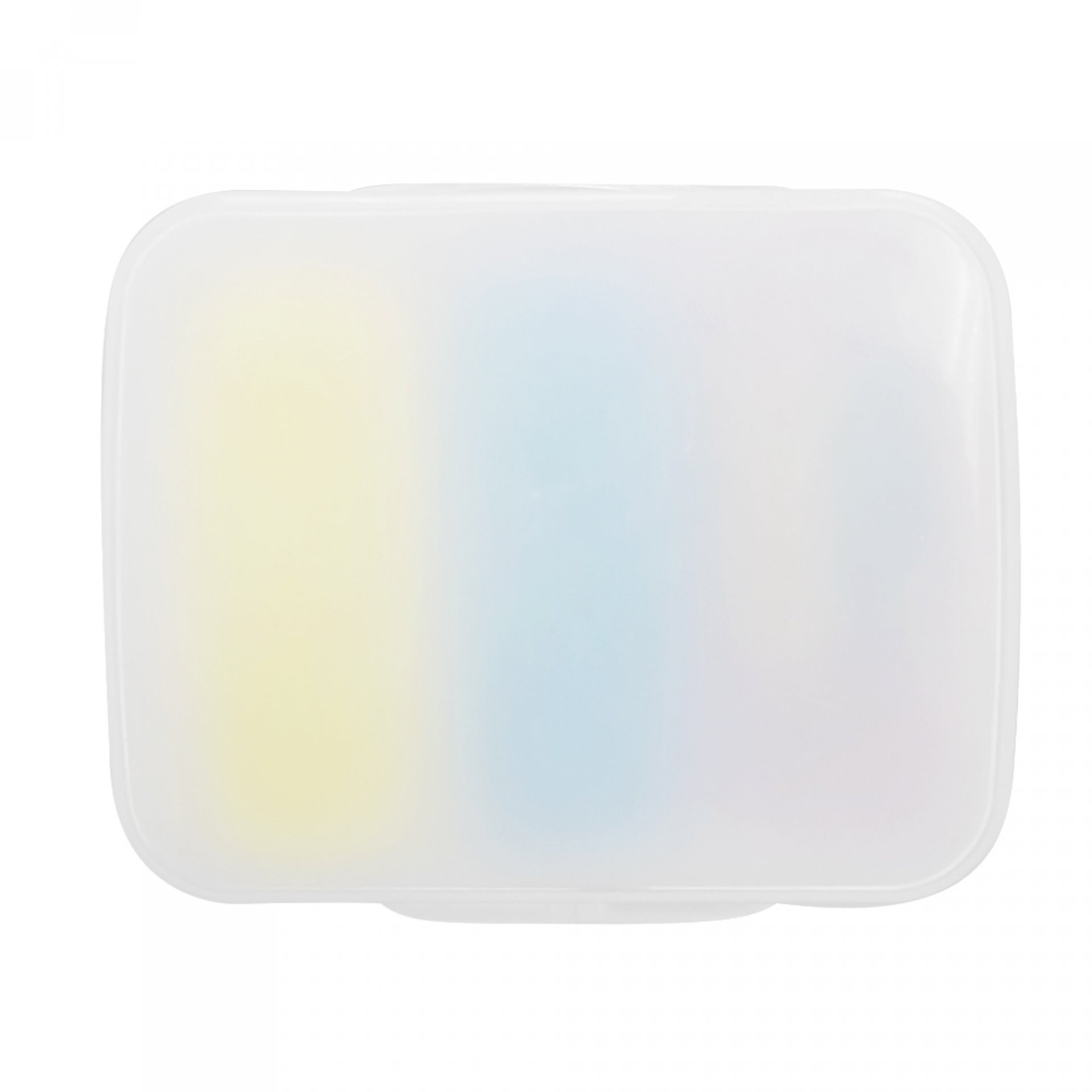 COSMETIQUERA BLANCA CON DISEÑO DE FIGURAS ROSADAS, ÚTIL PARA GUARDAR ACCESORIOS Y PRODUCTOS PERSONALES.
