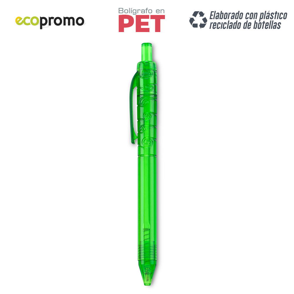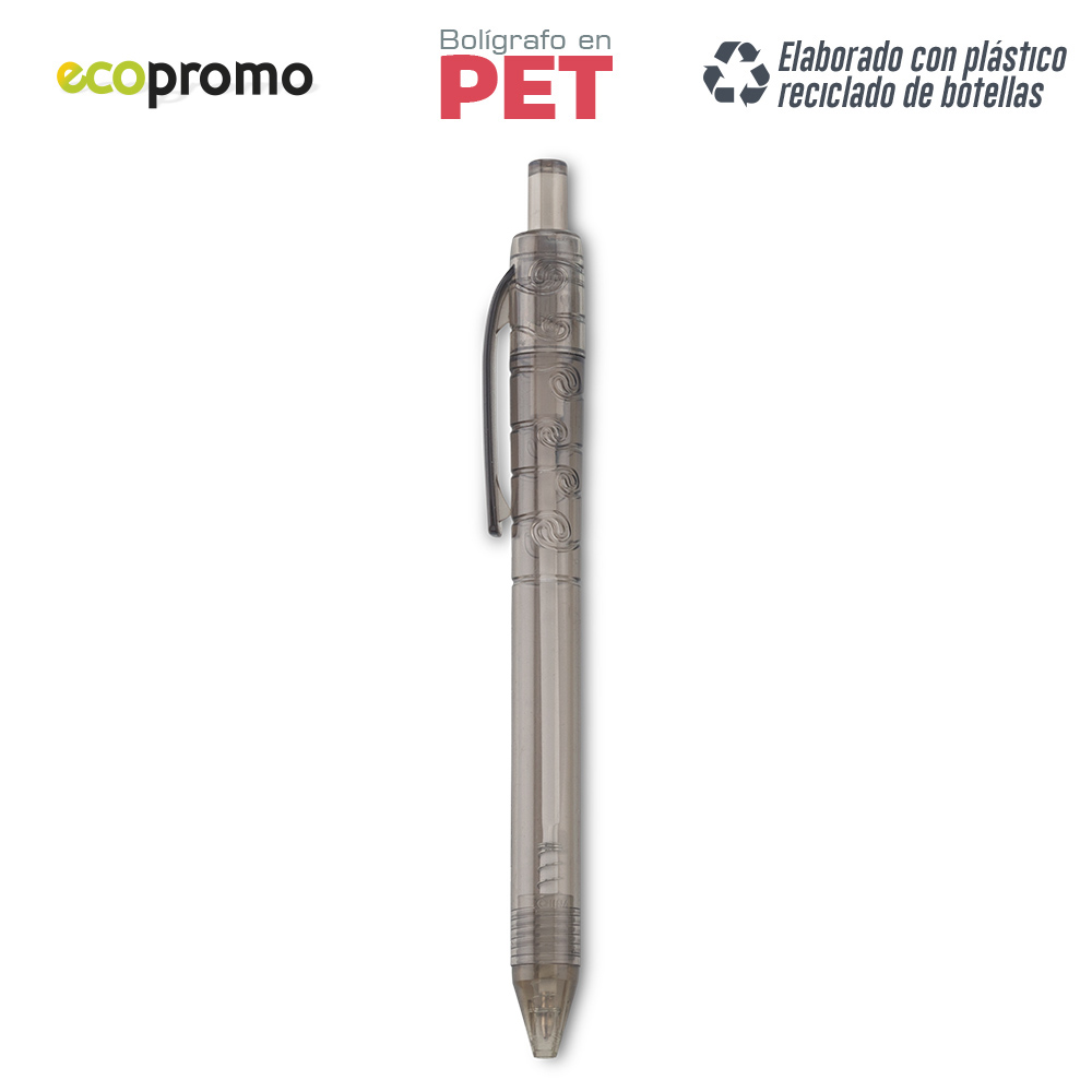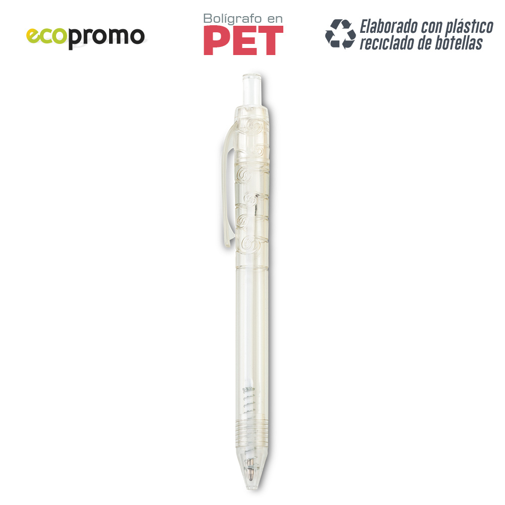 Bolígrafo plástico. Mecanismo Push. Elaborado con plástico reciclado de botellas.