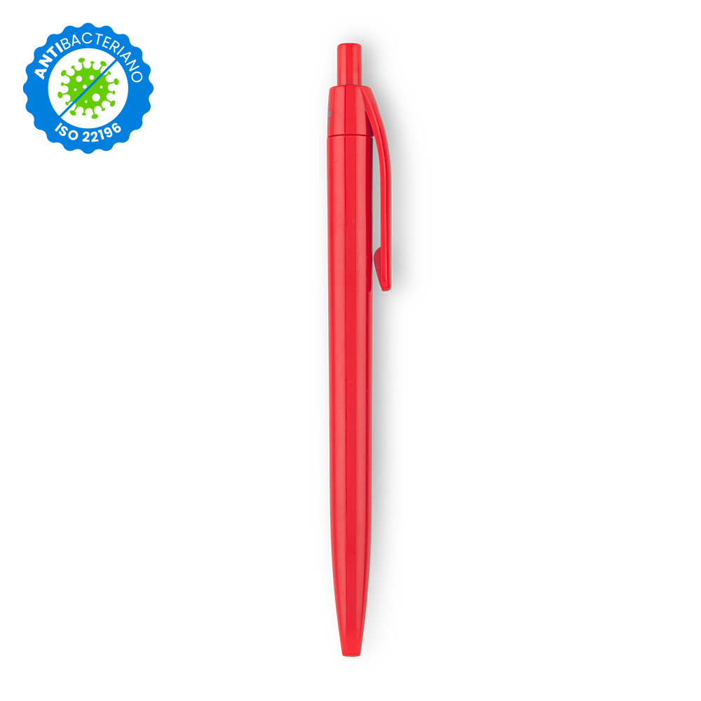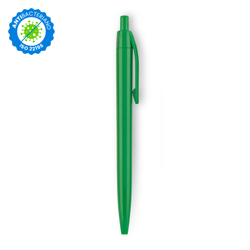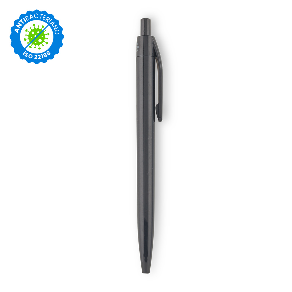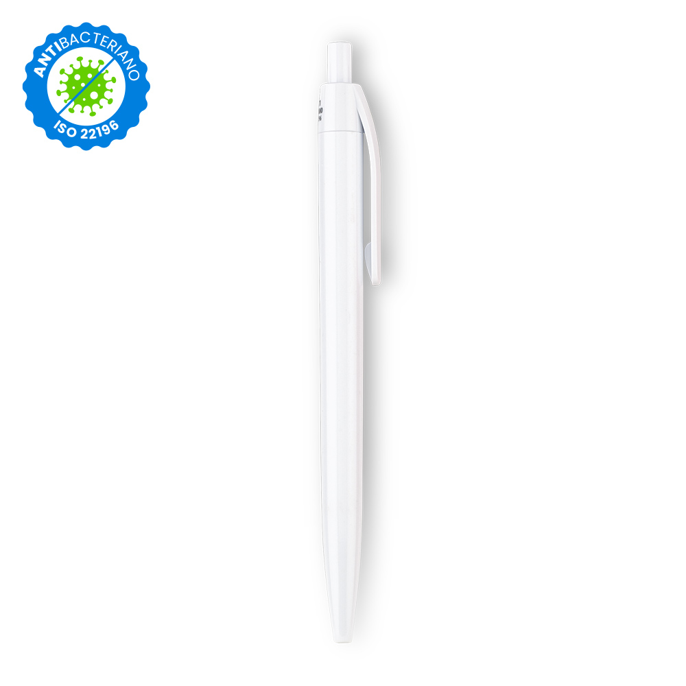 Bolígrafo plástico fabricado con un aditivo antibacteriano que inhibe y previene el crecimiento bacteriano sobre el cuerpo del bolígrafo gracias a la tecnología nano silver, un tratamiento especial realizado con iones de plata.