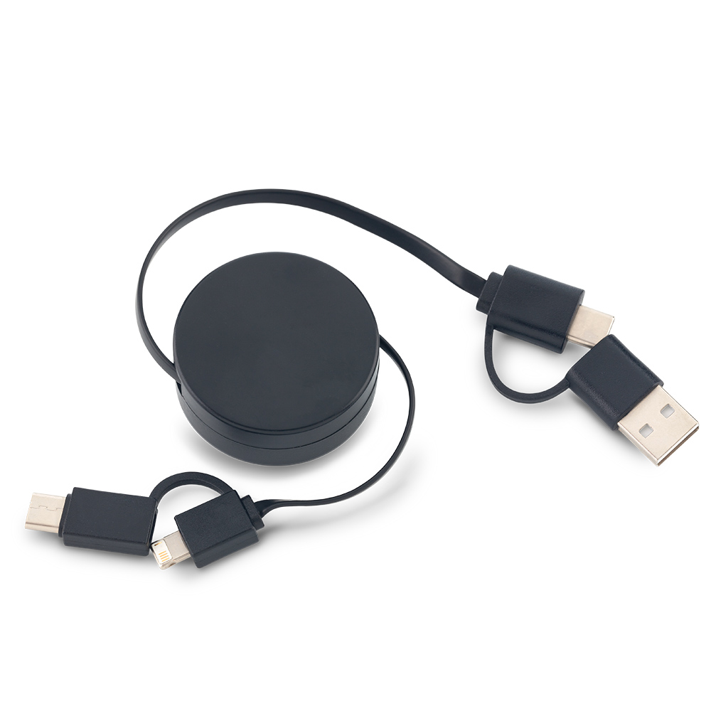 Cable multicargador de doble conexión tipo C y USB, con adaptadores Micro 2-1, lightning y tipo C. Retráctil.