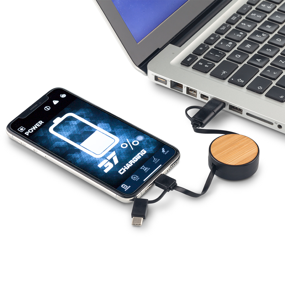 Cable Multicargador Bamboo es ideal como regalo corporativo, recuerda que con nosotros puedes personalizar con tu marca, así lograras destacar tu empresa!