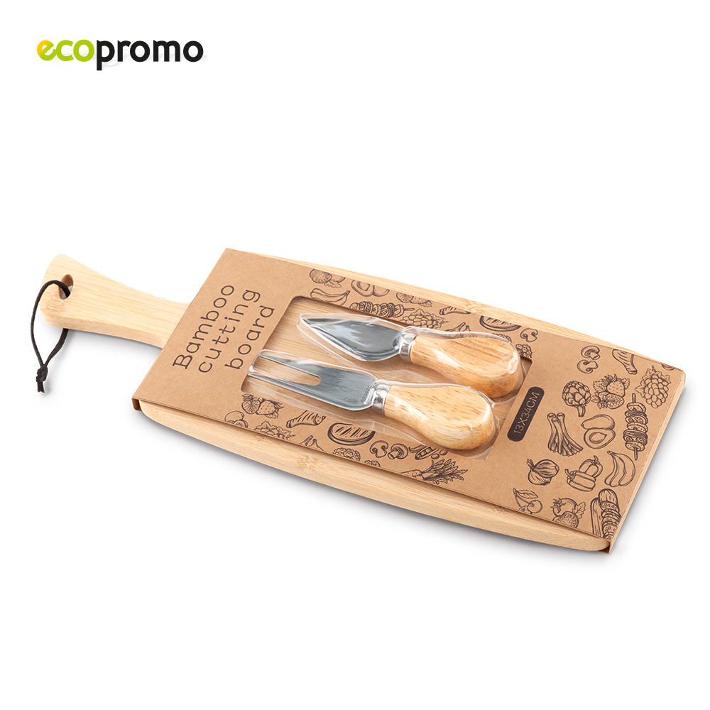 Set con tabla para cortar en bambú y dos accesorios.