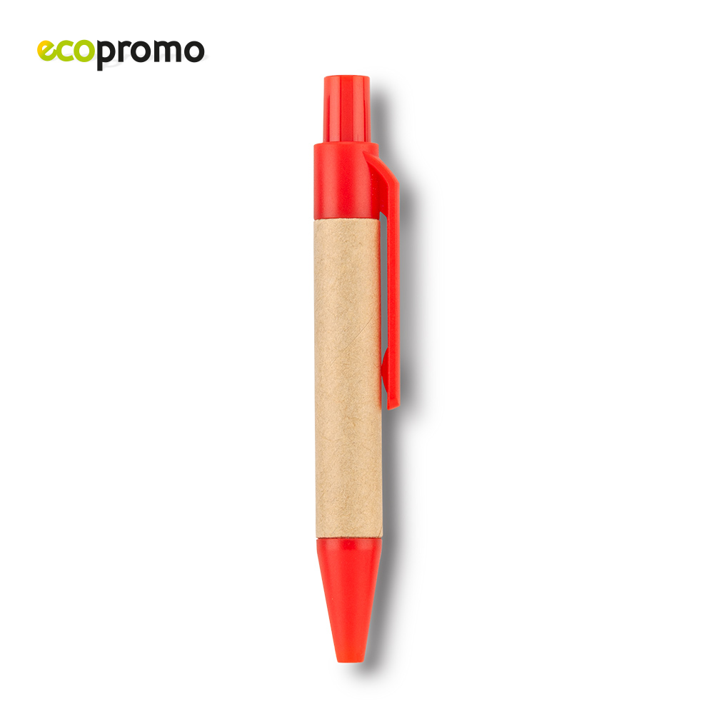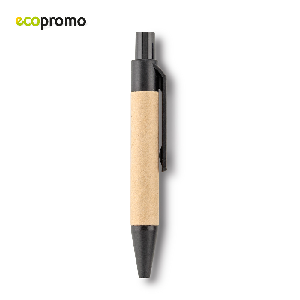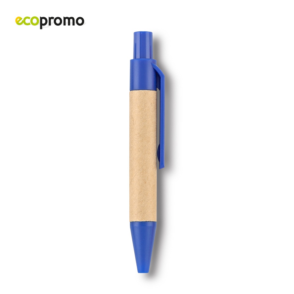 Mini bolígrafo en cartón, clip y punta plástica.