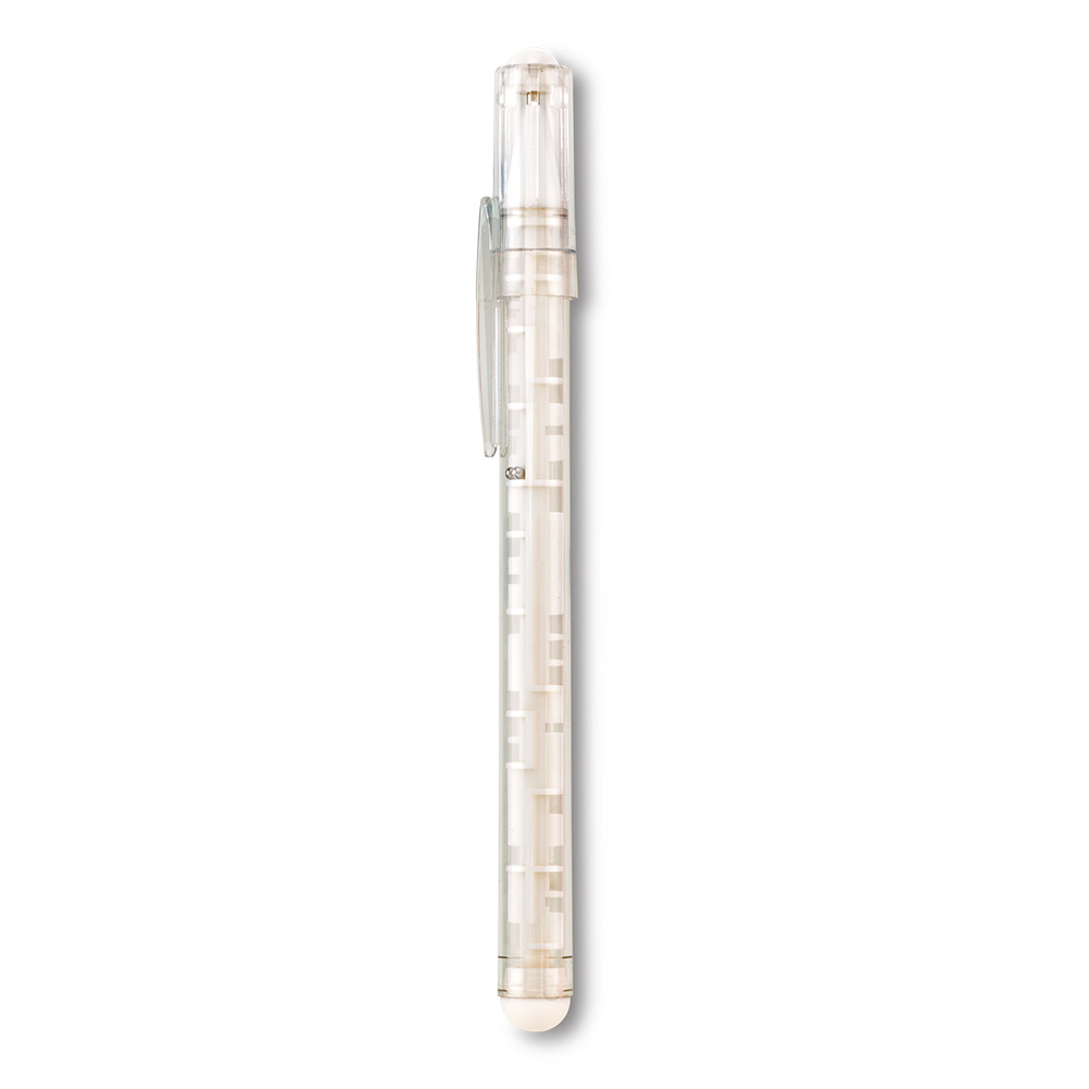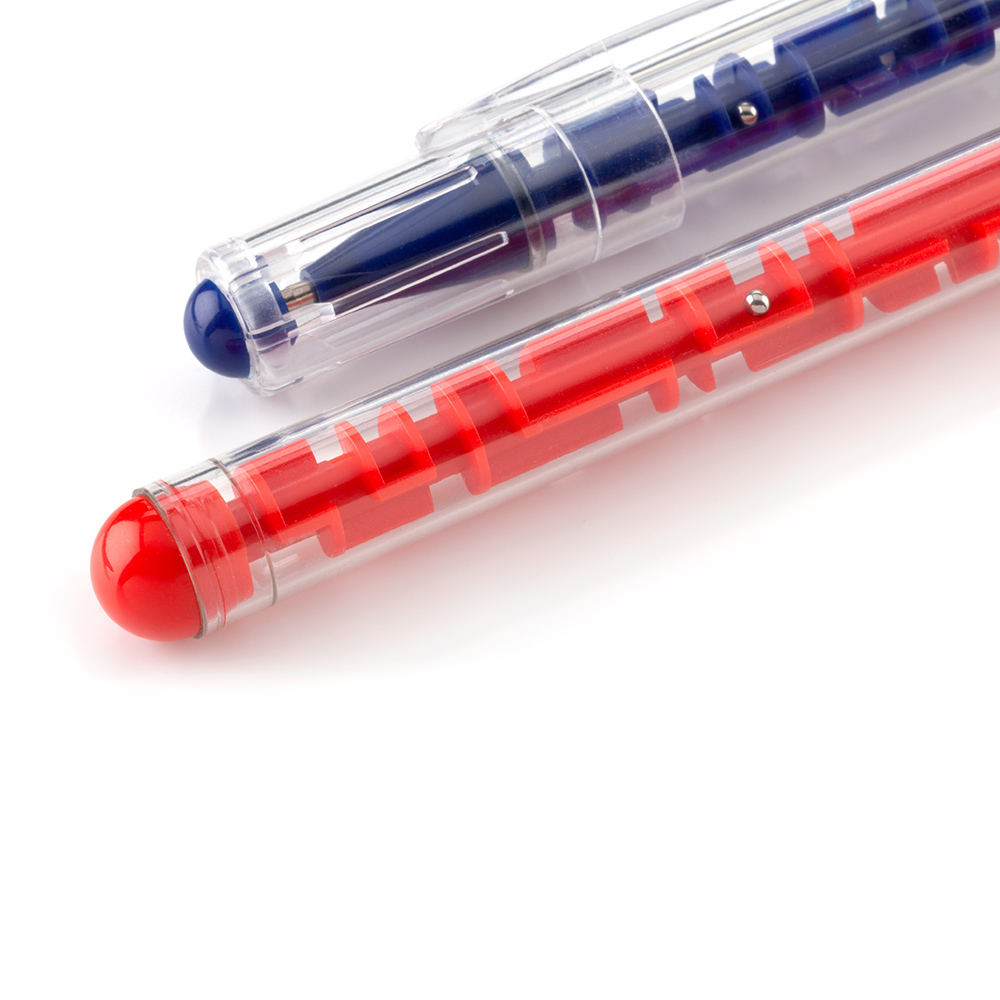 Bolígrafo plástico con tapa y barril con laberinto.