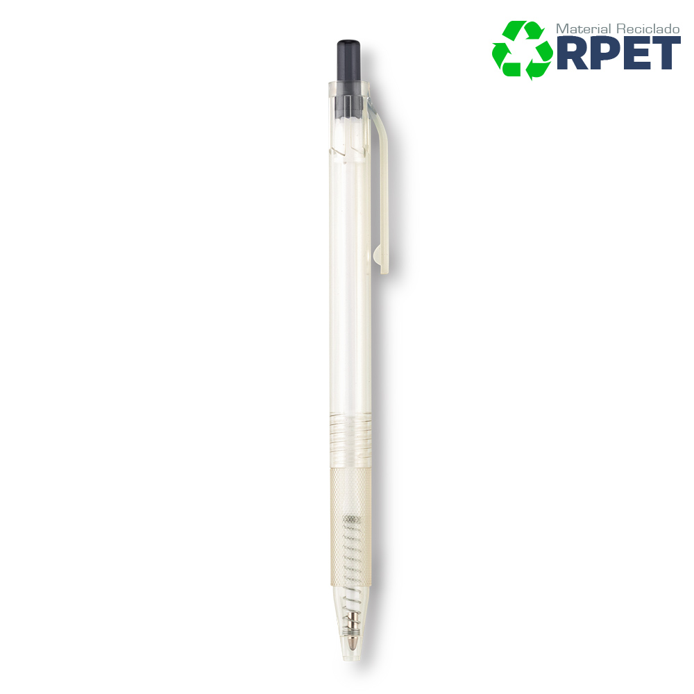 Bolígrafo plástico. Mecanismo Push. Elaborado con plástico reciclado de botellas.