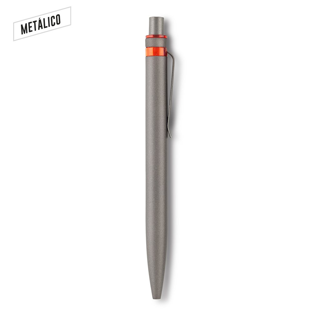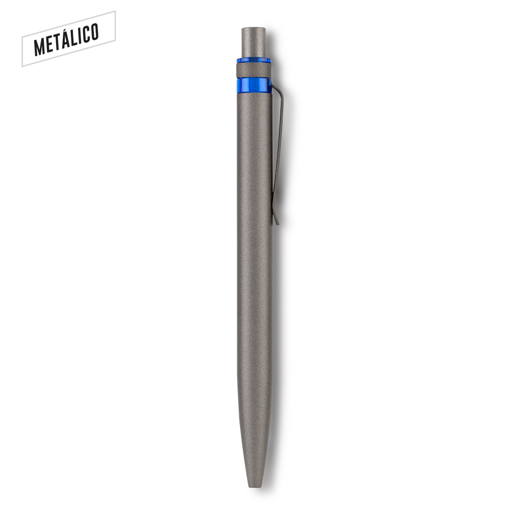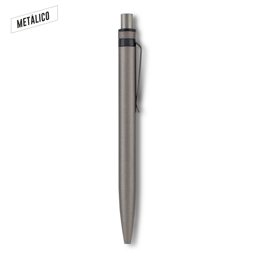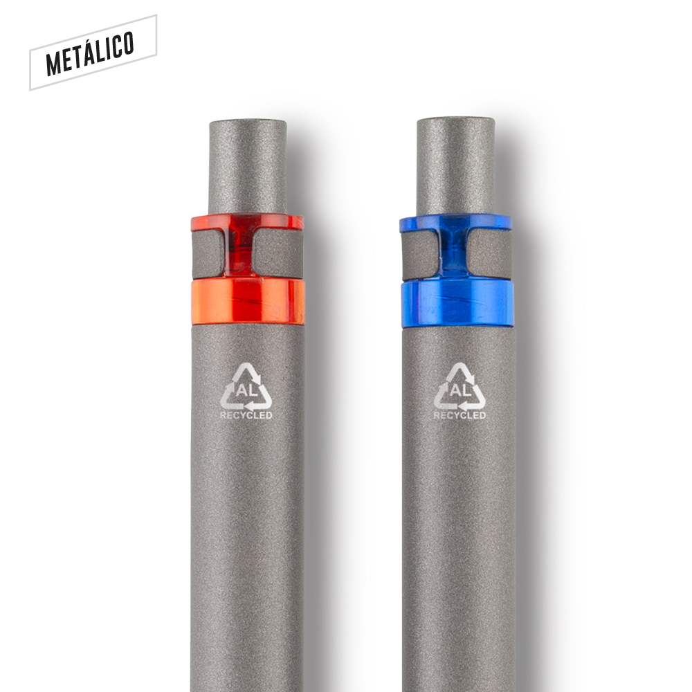 Bolígrafo elaborado en aluminio post-consumo. Clip metálico. Mecanismo push.