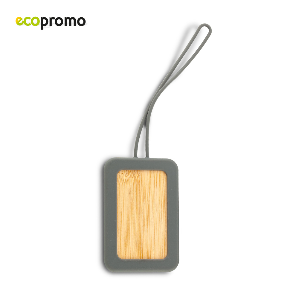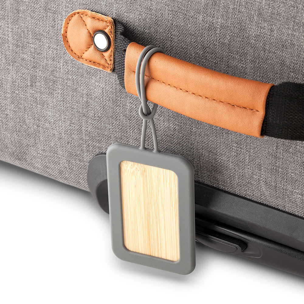 Identificador de maletas en bambú con forro en silicona.