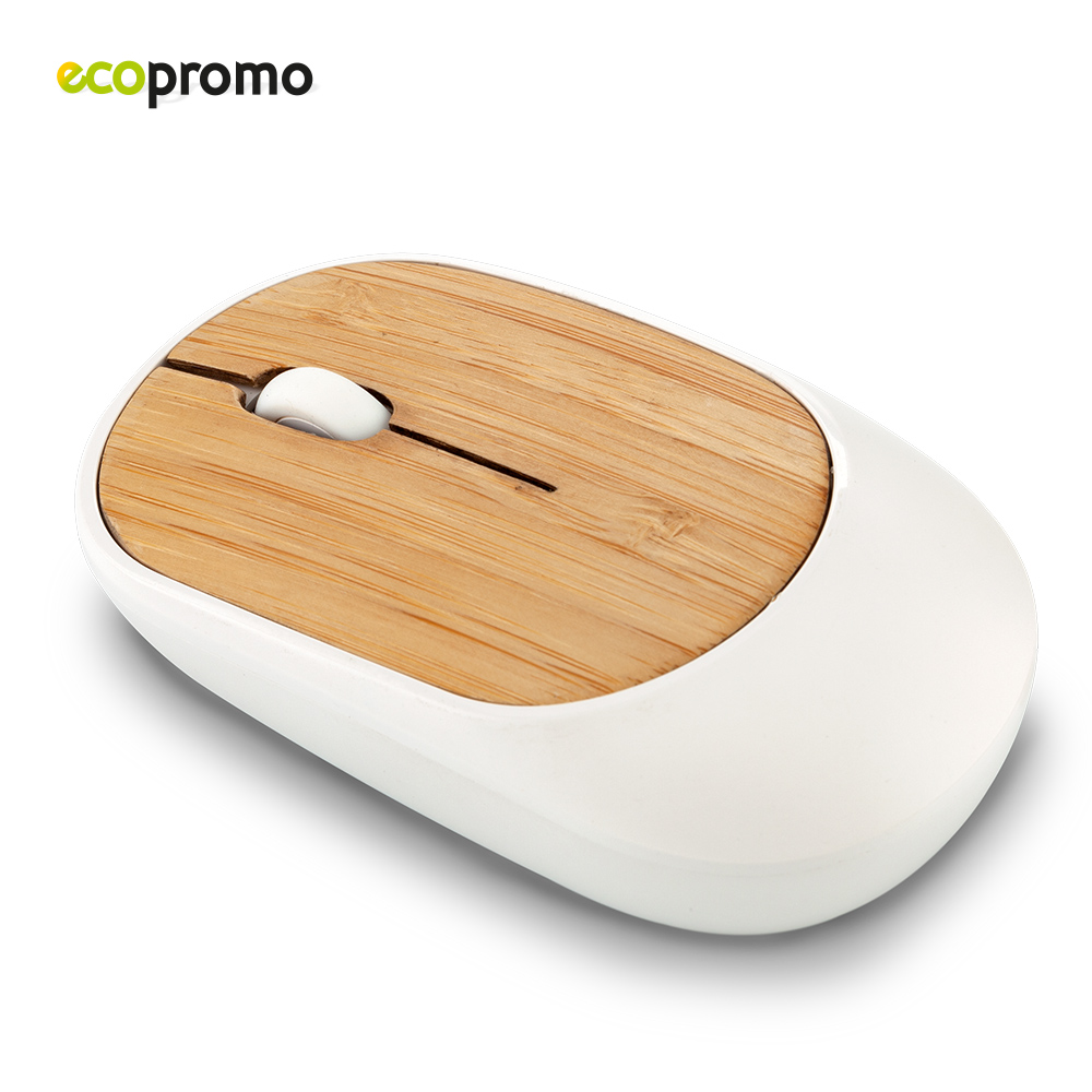 Mouse plástico inalámbrico con partes de bambú. Conexión automática mediante transmisor USB incluido. 1 Pila AA (no incluida). Empaque caja individual.