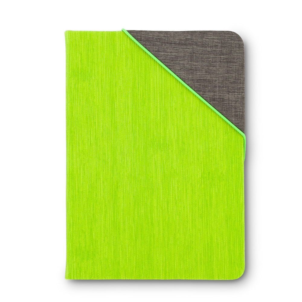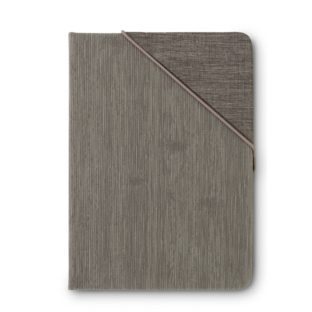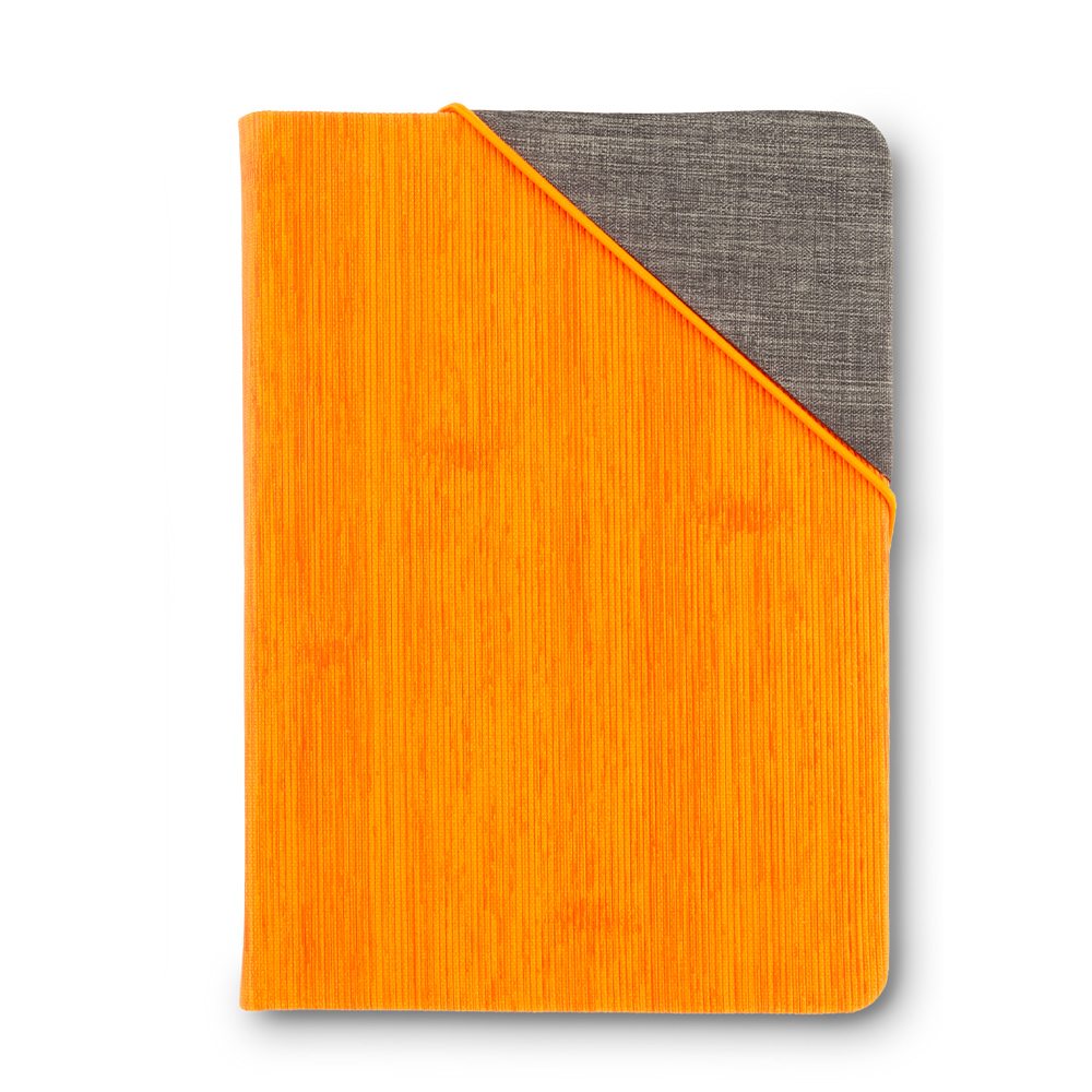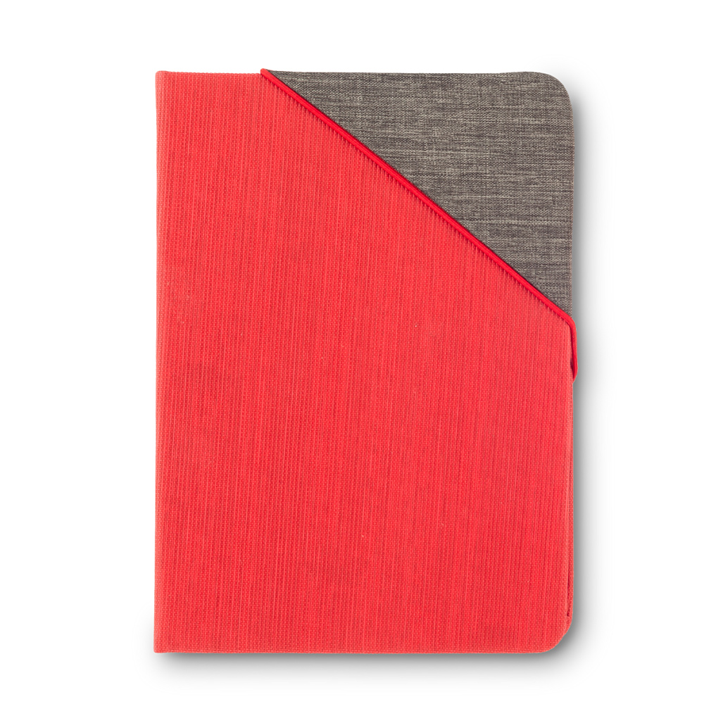 Libreta con cubiertas en poliuretano con textura, 80 hojas de papel color blanco con rayas. Cierre elástico.