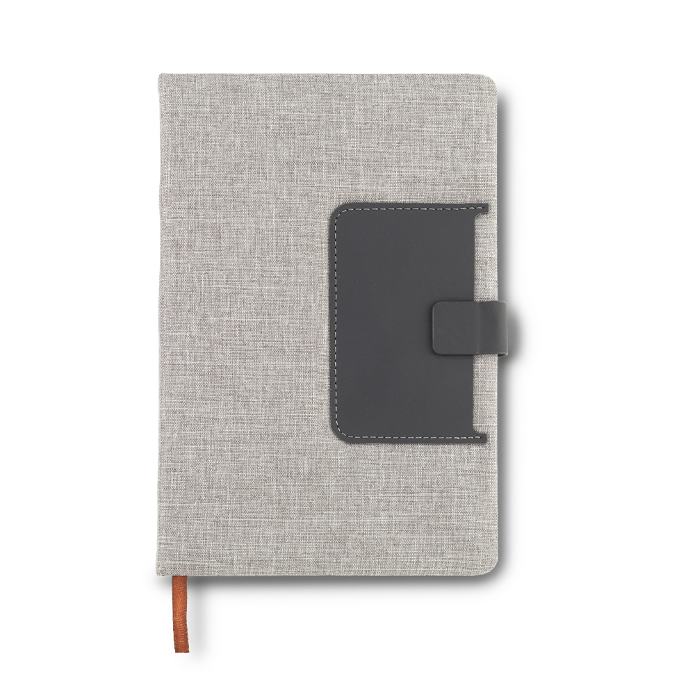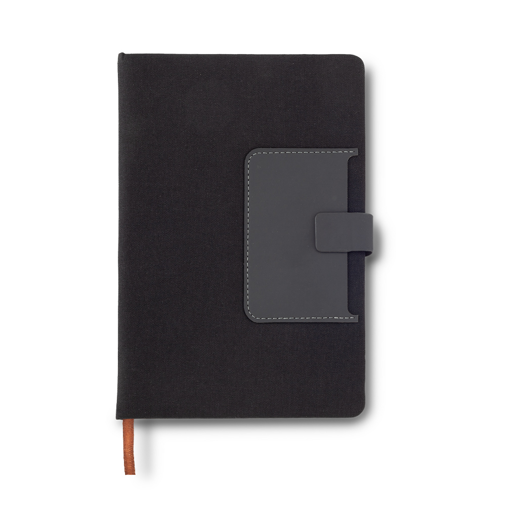 Libreta con cubiertas en poliéster, con tarjetero. 96 hojas de papel color crema.