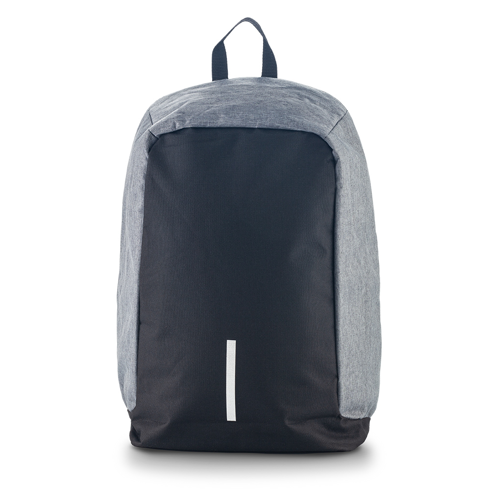 Morral antirrobo sencillo en poliéster, bolsillo principal con cremallera oculta, compartimento para laptop de 14 y dos bolsillos internos. Línea reflectiva en la parte frontal, tirantes y espaldar semi-acolchados.