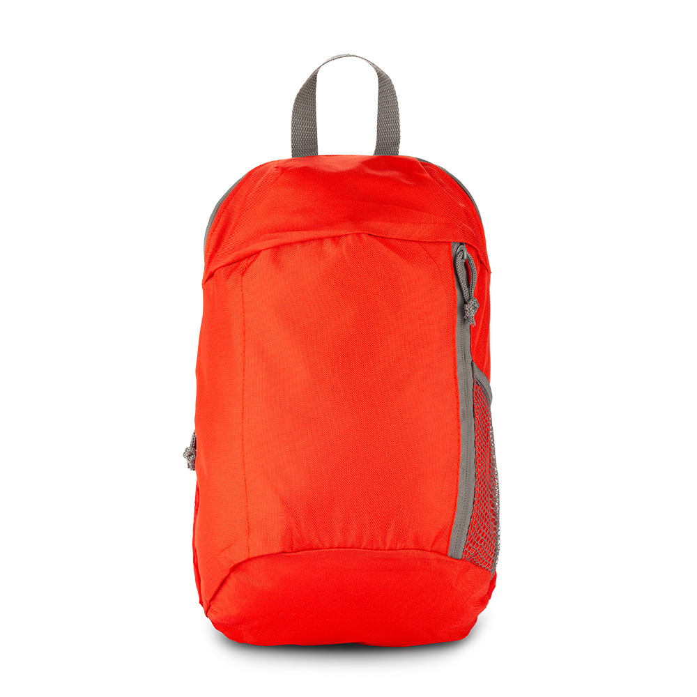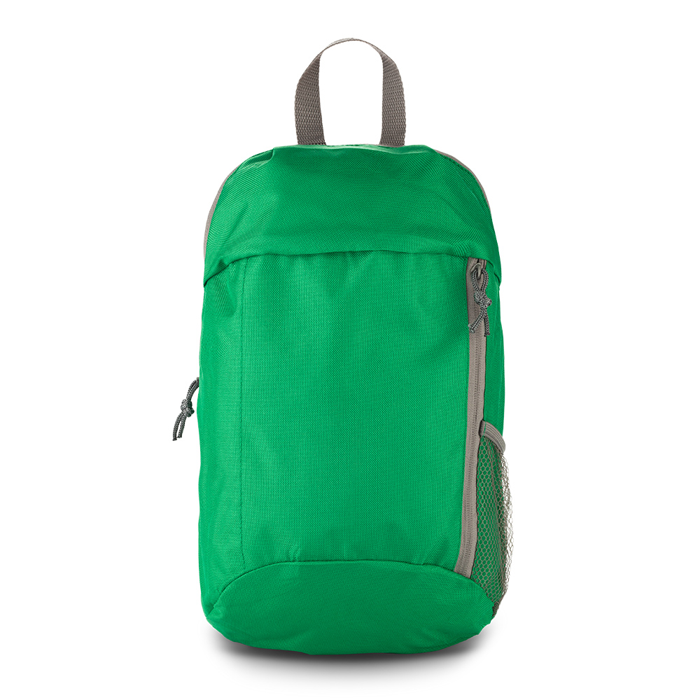 Morral en poliéster 600D, bolsillo externo con cremallera, con malla portabotella.