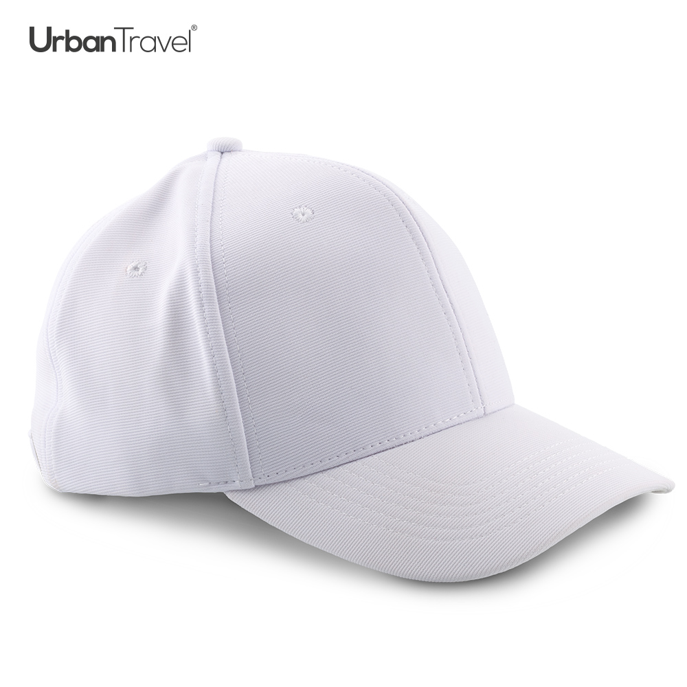 Gorra en poliéster de alta calidad, de 6 páneles, con visera indeformable, botón forrado y con cierre de hebilla metálica.