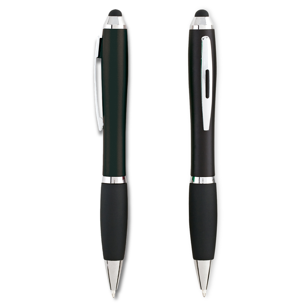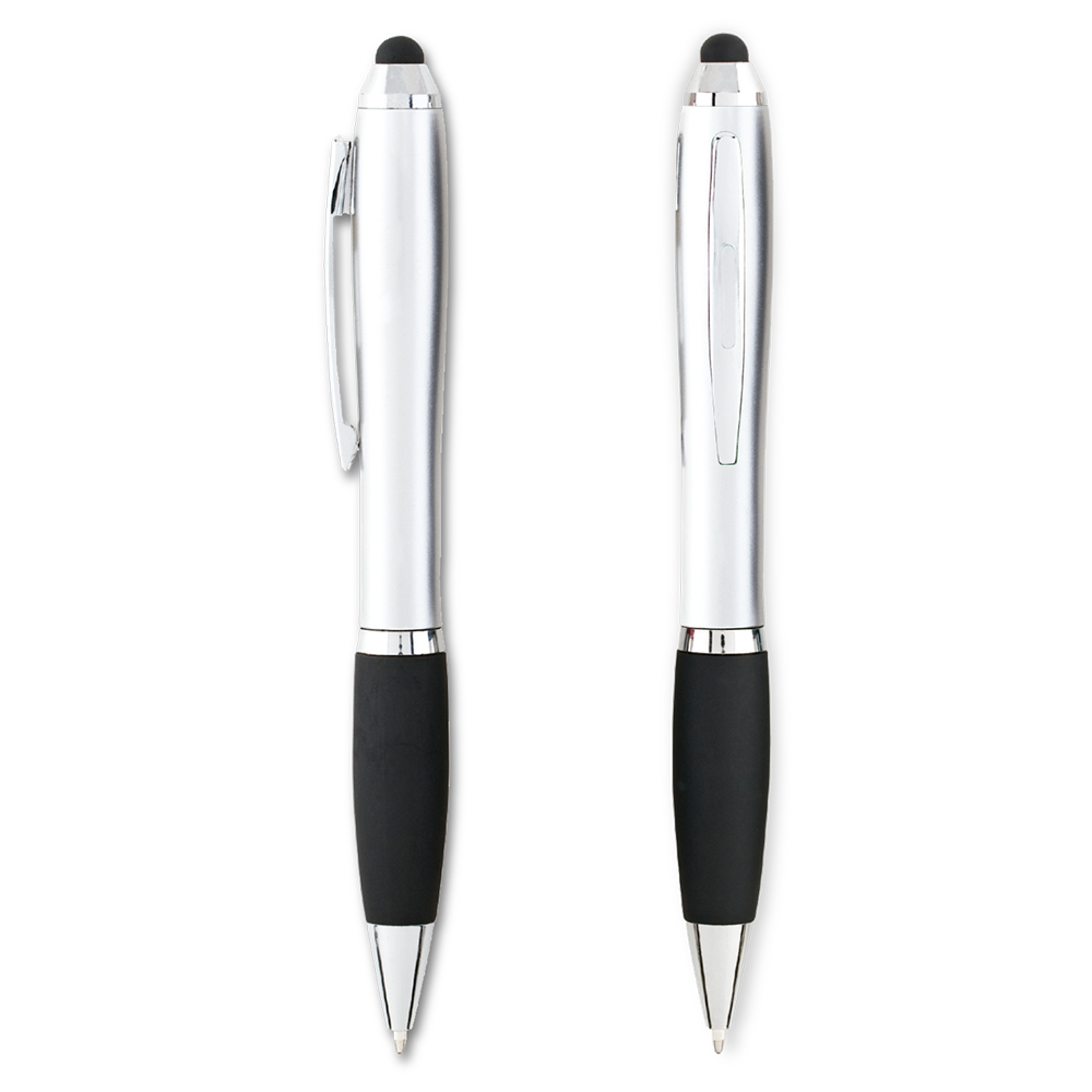 Bolígrafo plástico con stylus. Clip metálico.
