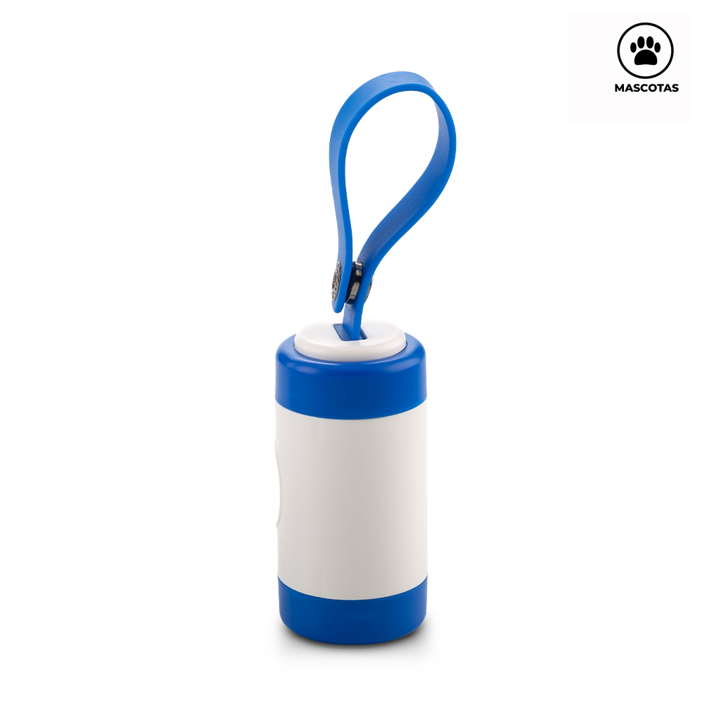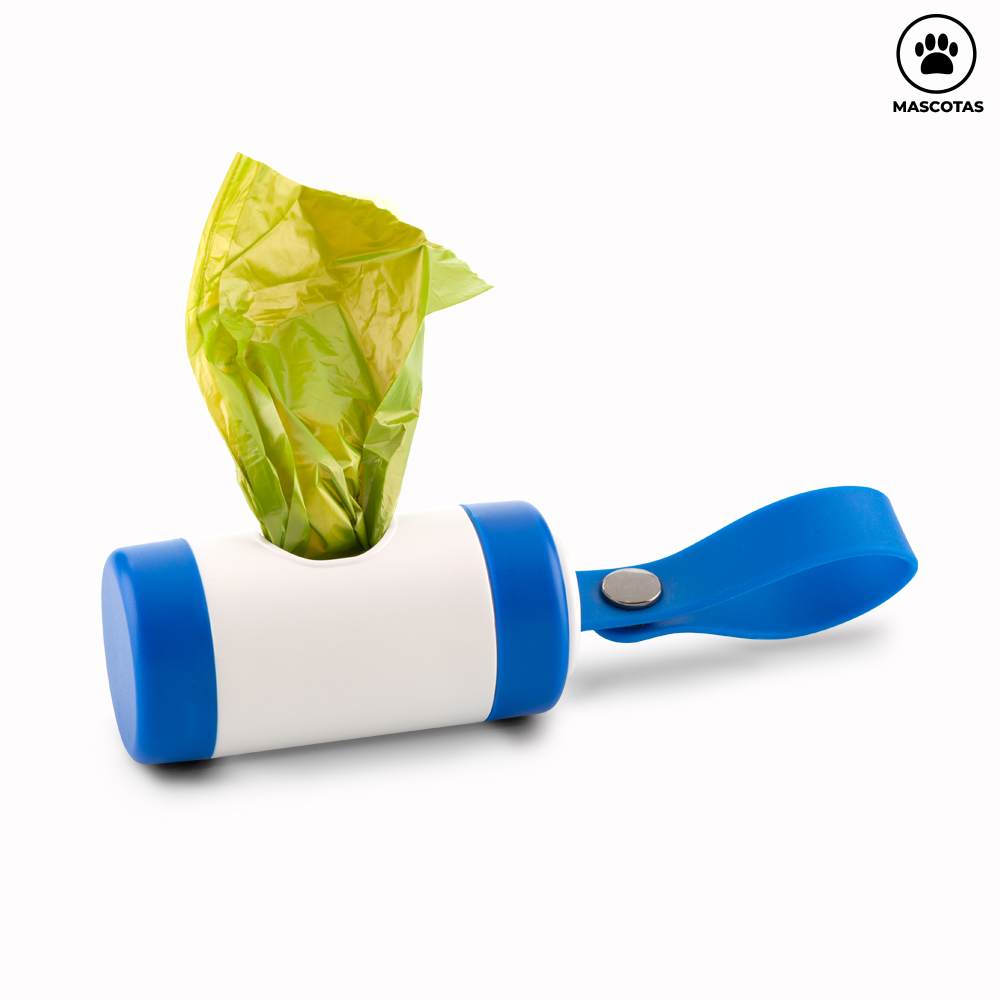 Dispensador de bolsas para mascota. Incluye 10 bolsas y manija en silicona.