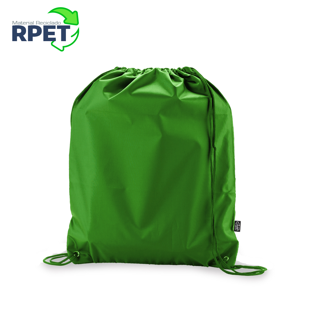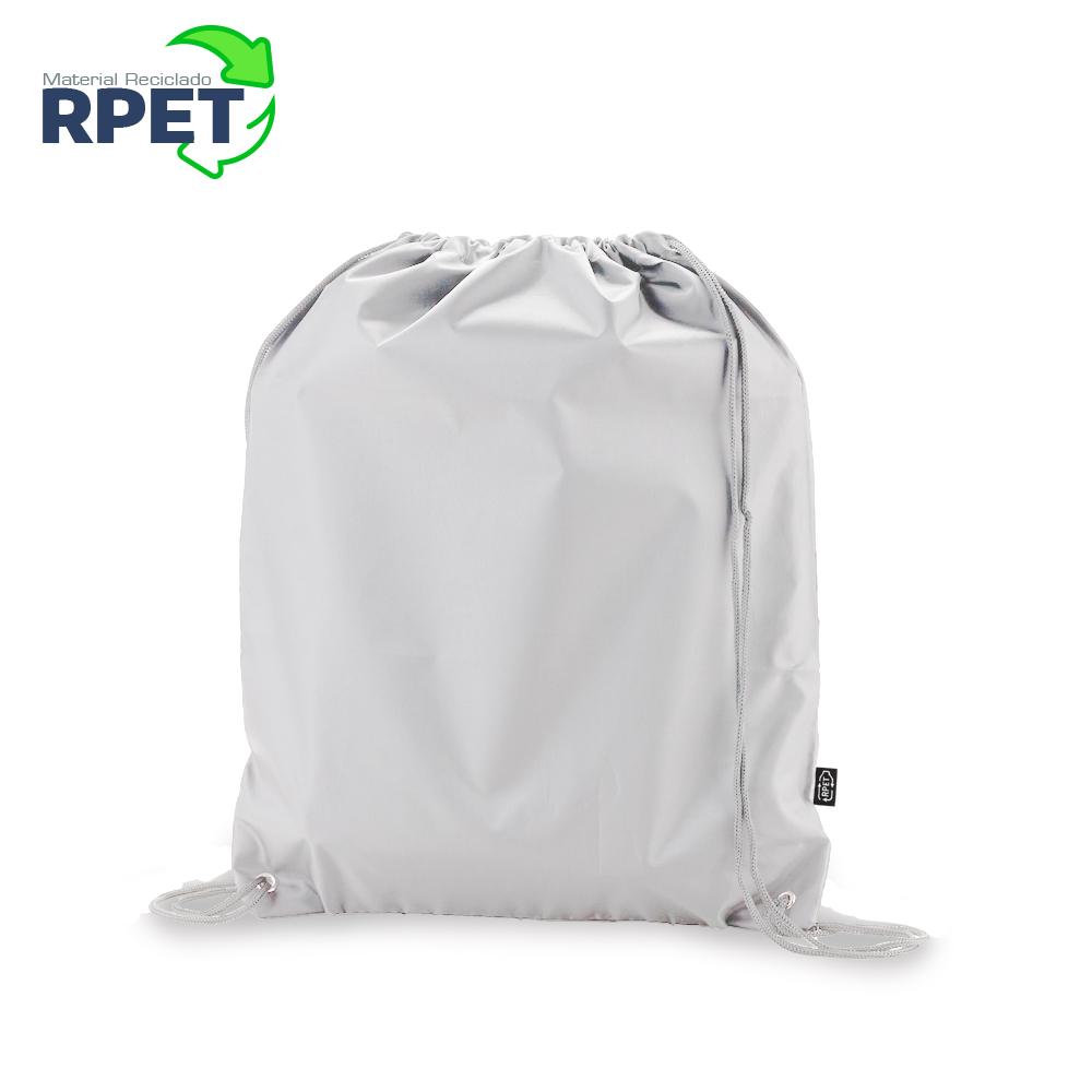 Tula morral fabricada en 100% RPET. Cordón para cargar y cerrar.