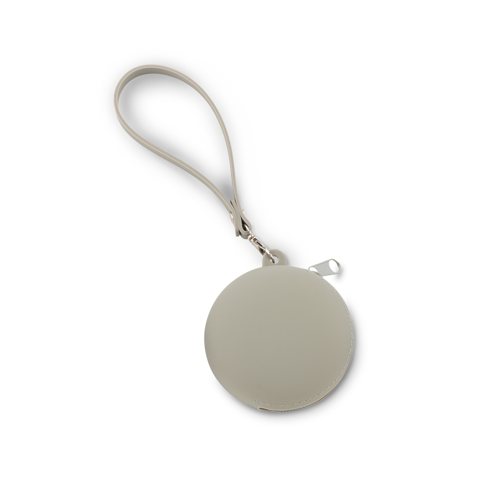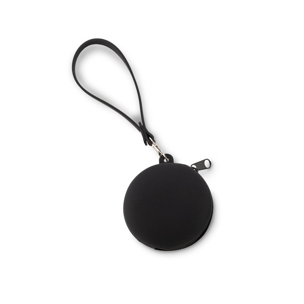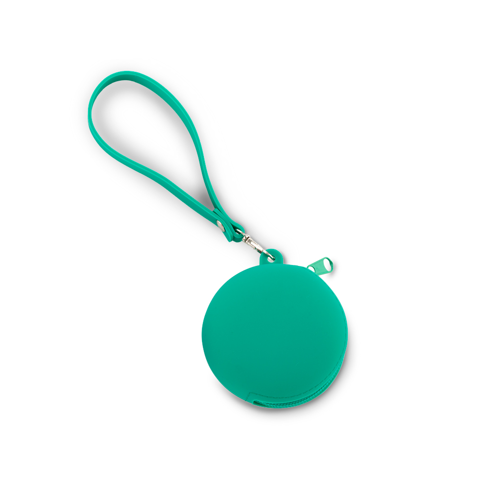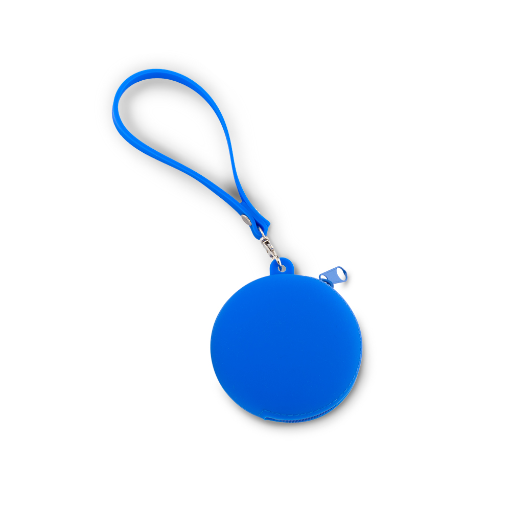 Monedero en silicona flexible. Con accesorio en silicona para poderlo cargar.