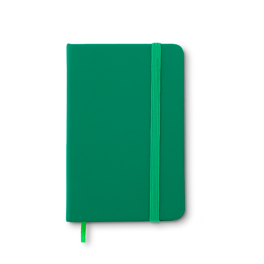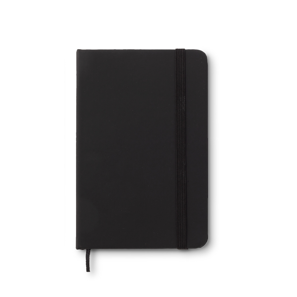 Libreta en poliuretano con cierre elástico. 96 hojas rayadas.