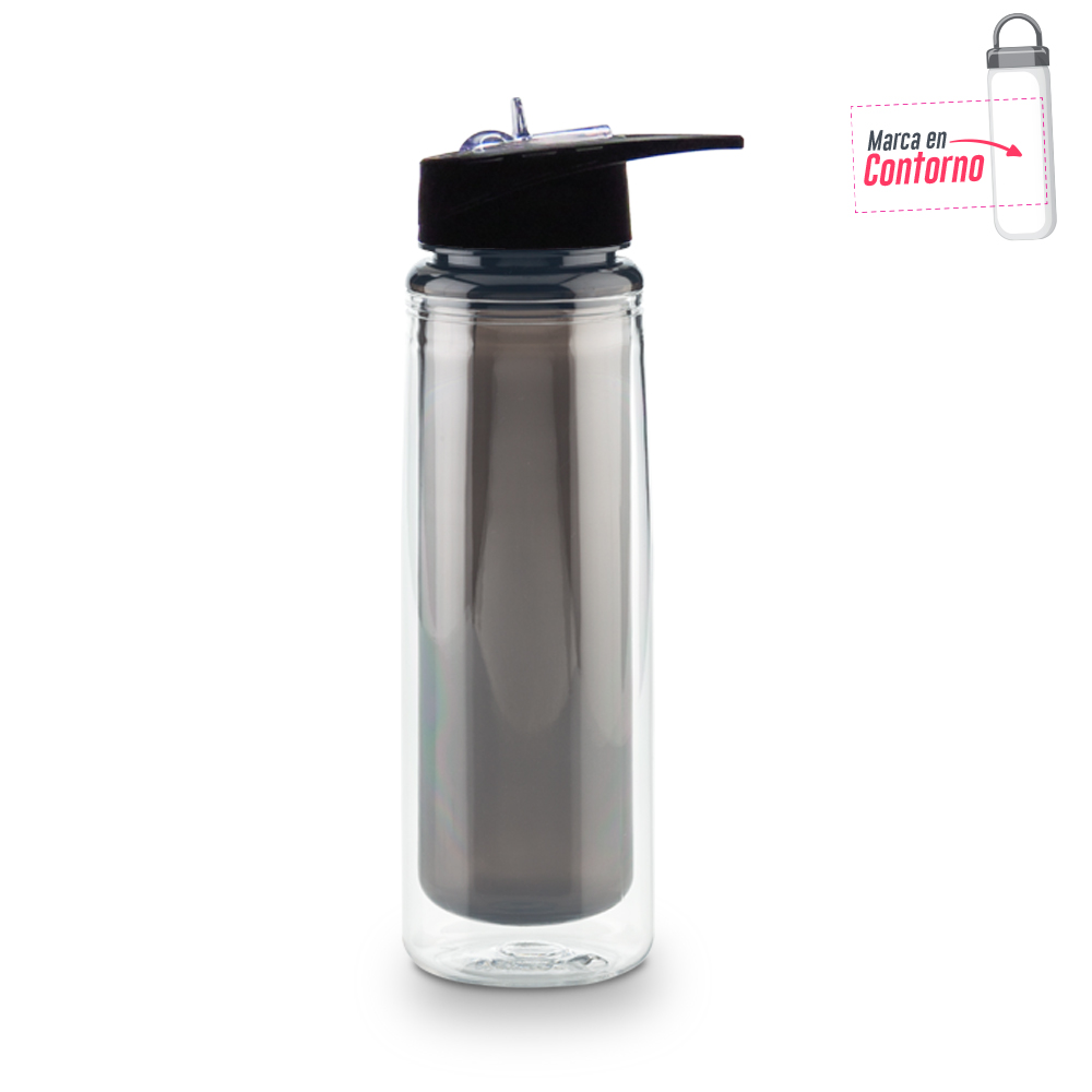 Botilito plástico doble pared en PETG. Tapa rosca con pitillo.