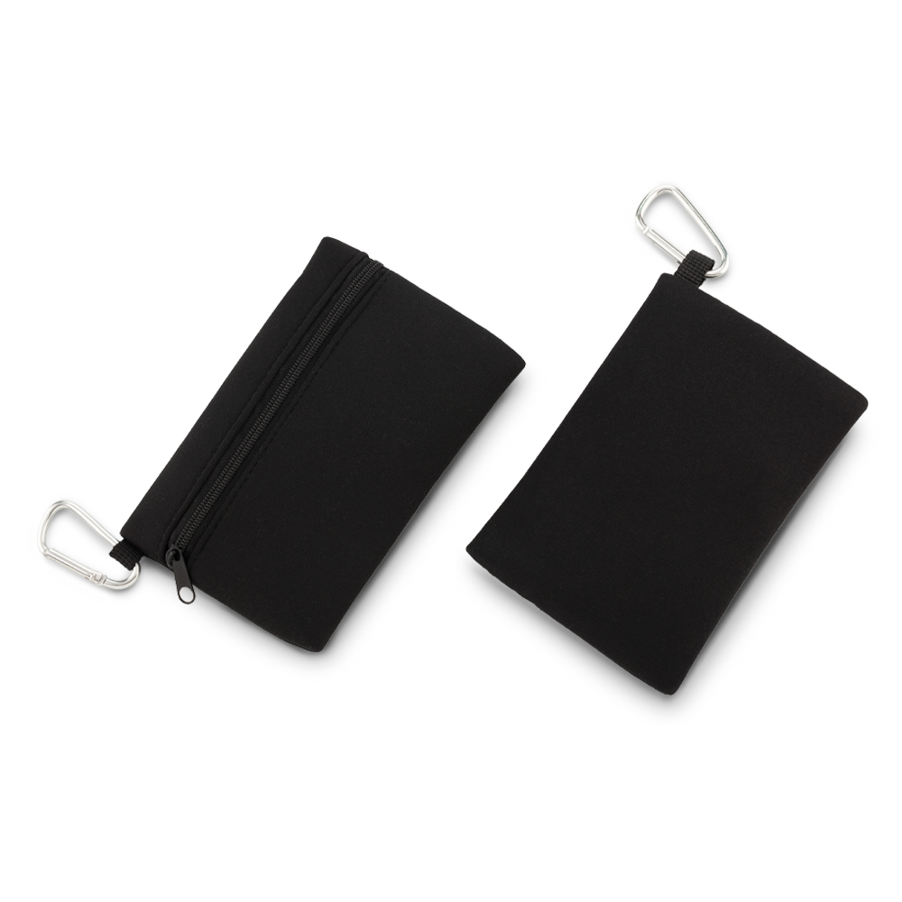 Set de golf en poliéster con carabinero. Incluye: 4 tees, 1 marcador y 1 arregla piques en plástico.