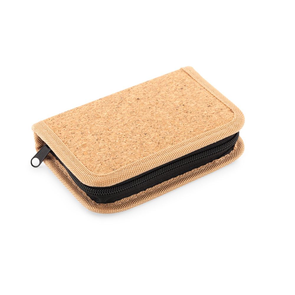 Set de herramientas de 24 piezas en estuche de corcho. Empaque caja individual.