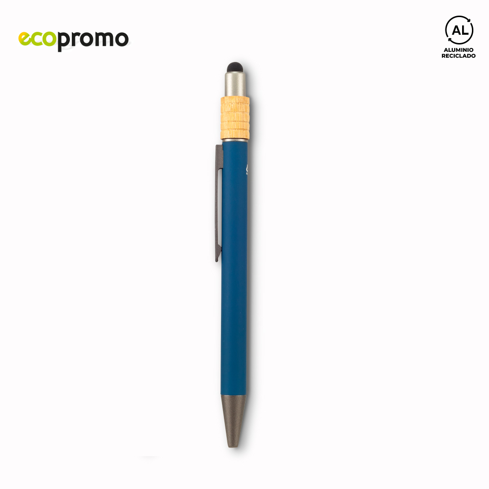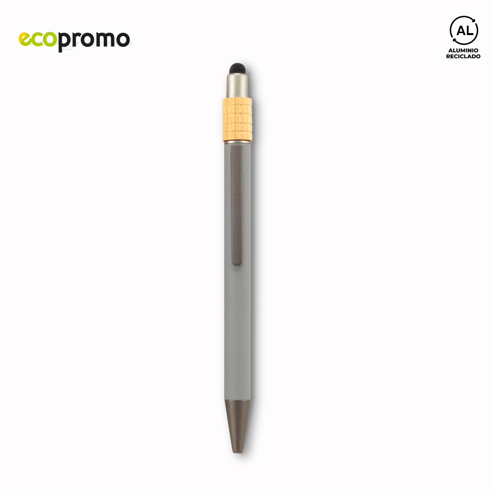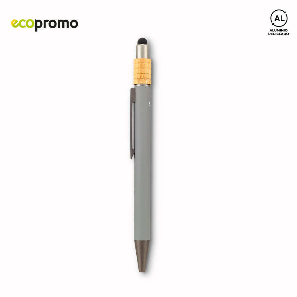 Bolígrafo metálico con stylus. Mecanismo push. Incluye un spinner en bambú.