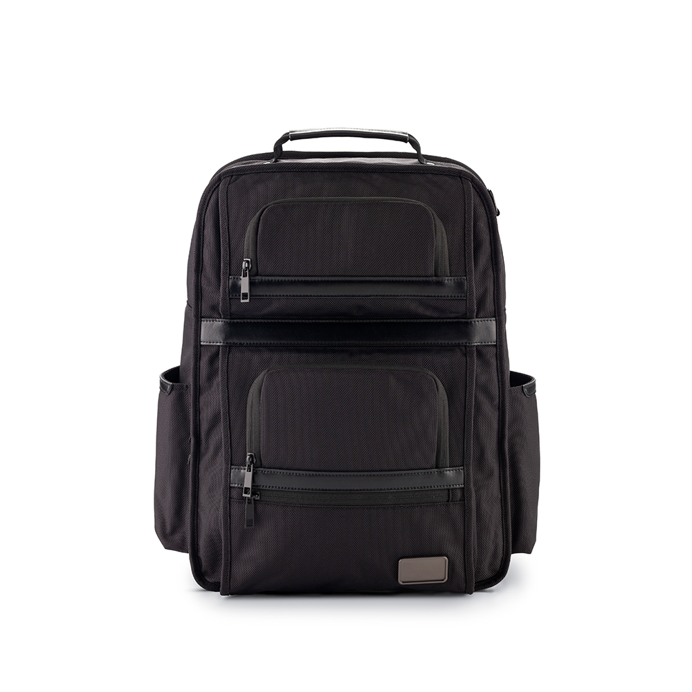 Morral backpack en poliéster. Apto para portátil de hasta 15″. Cinco bolsillos externos con cremallera. Dos bolsillos externos sin cremallera. Compartimientos internos. Banda posterior para enganchar en trolley. Incluye placa metálica.