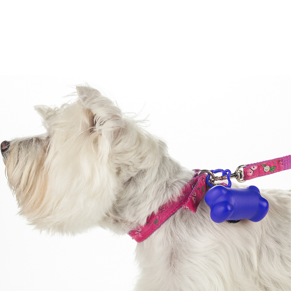 Dispensador de bolsas para mascota. Incluye 15 bolsas. Medidas: 8 cm x 4 cm x 4.4 cm. Marca: 2.5 cm / Tampografía.