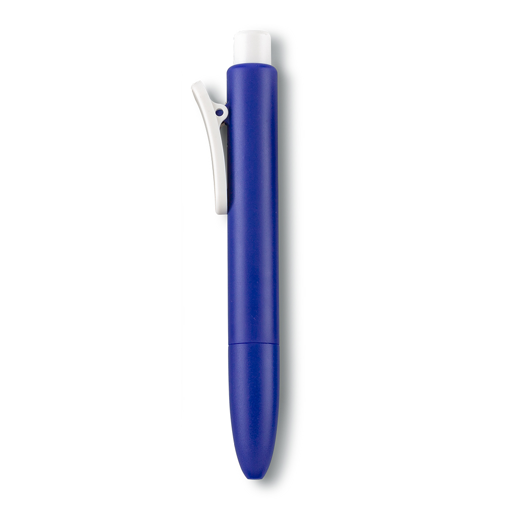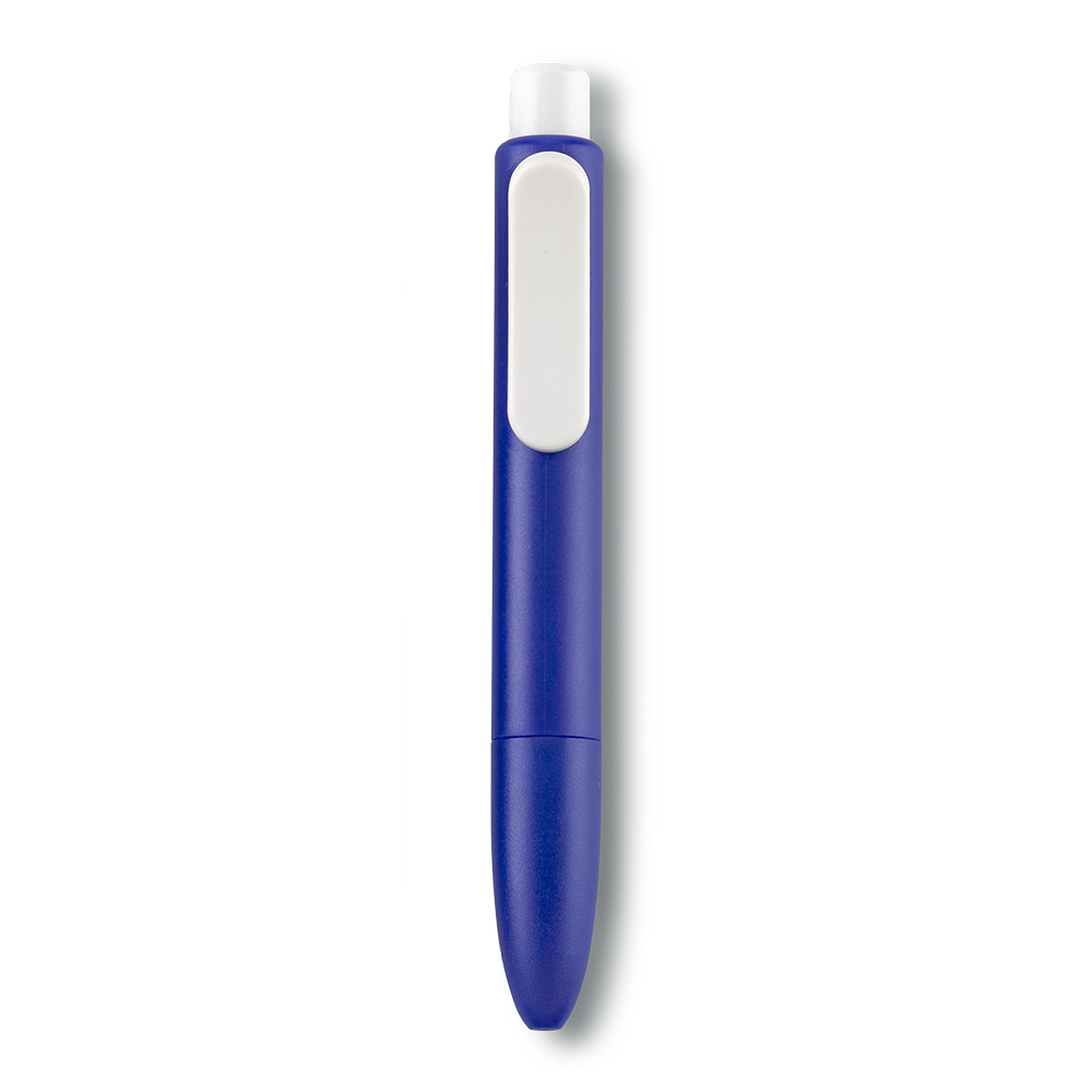 Mini bolígrafo plástico, mecanismo push, clip sujetador.