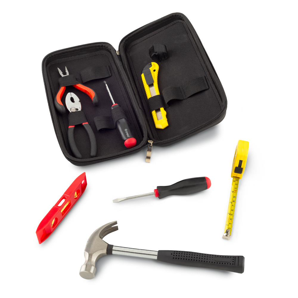 Set de herramientas de 8 piezas en estuche de goma EVA.